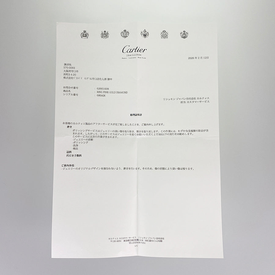 Manufacturer's repair certificate (polished/February 2026)