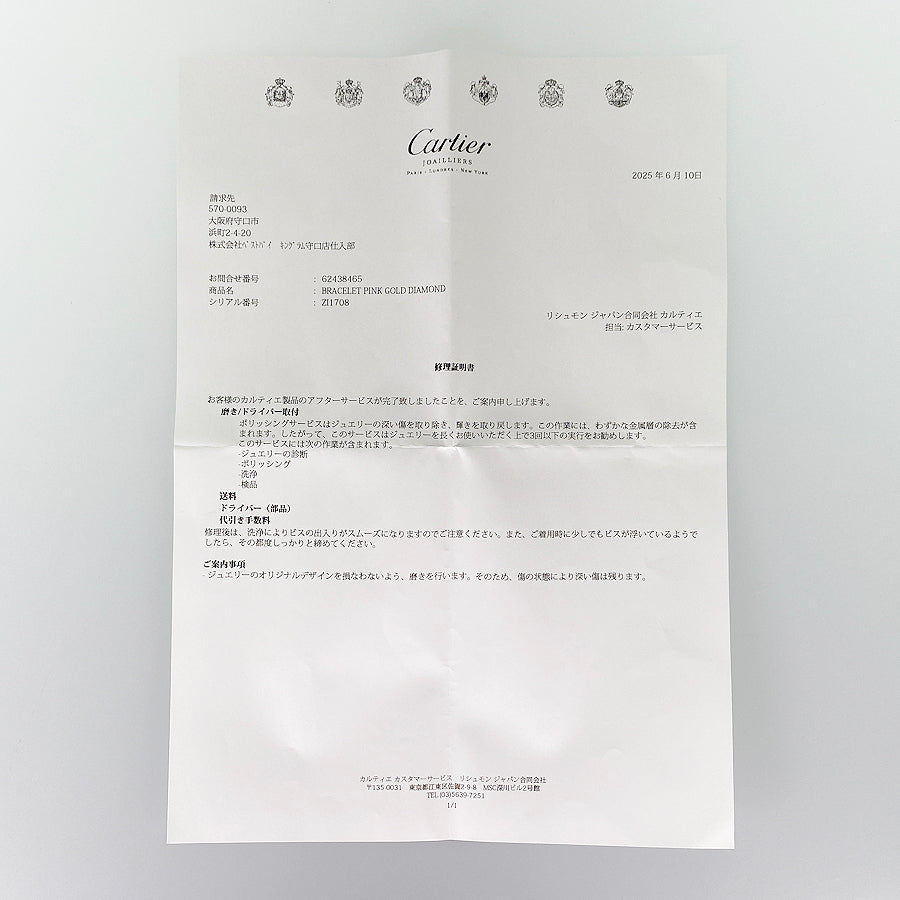 Manufacturer repair certificate (polished, screwdriver/June 2025)
