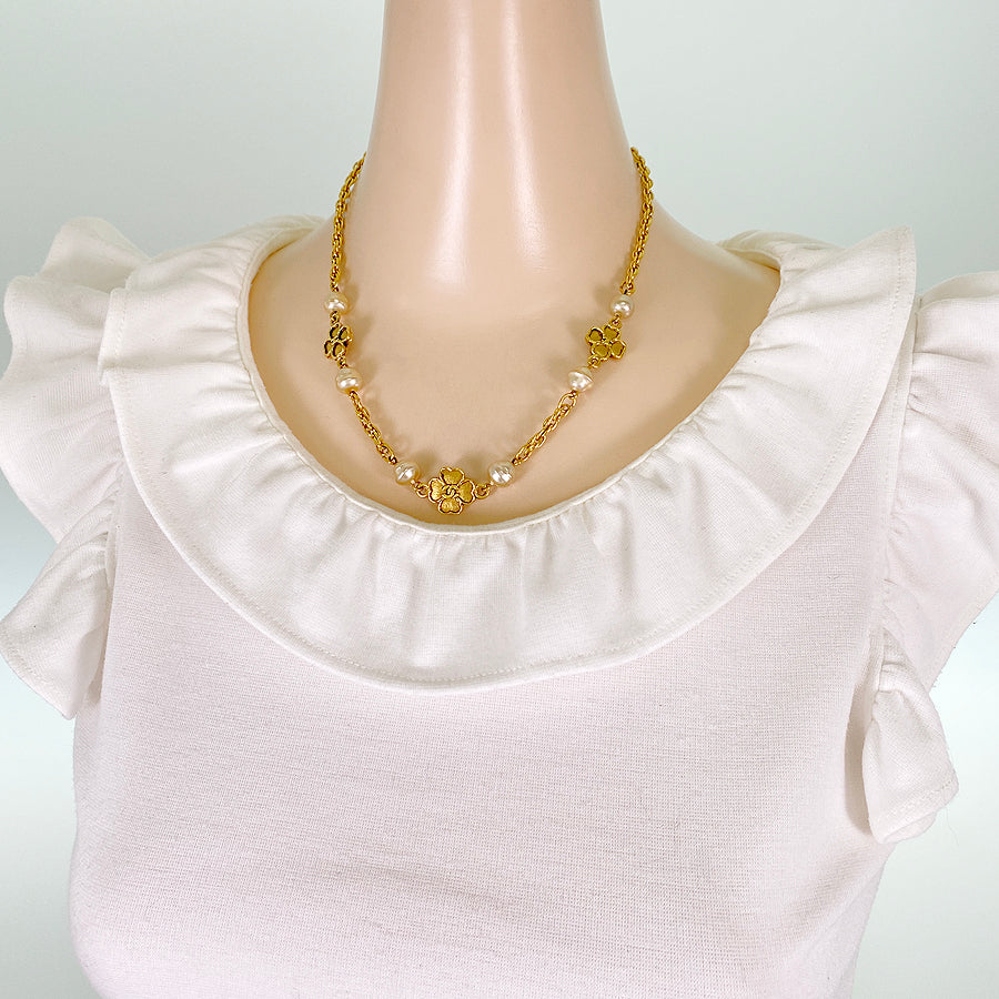 Weight:17.4g Fake Pearl:7.8mm-8.3mm Clover Size:13.8mm×13.6mm Necklace full length:43.5cm