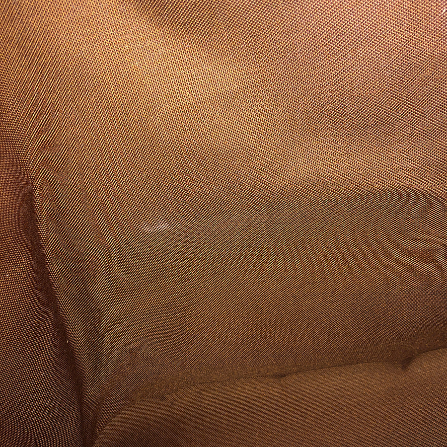 The tanned leather has sunburn, dark spots, stains, light scratches, and scuffs.