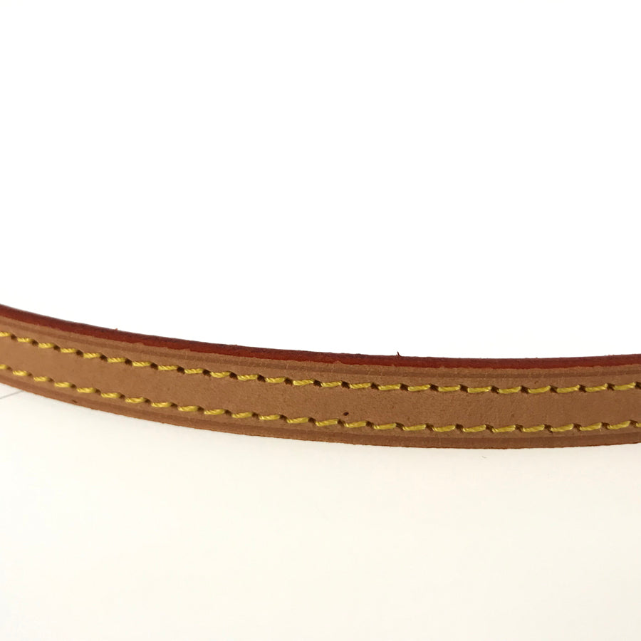 Strap: The tanned leather has some burns, some dirt, and some scrub.