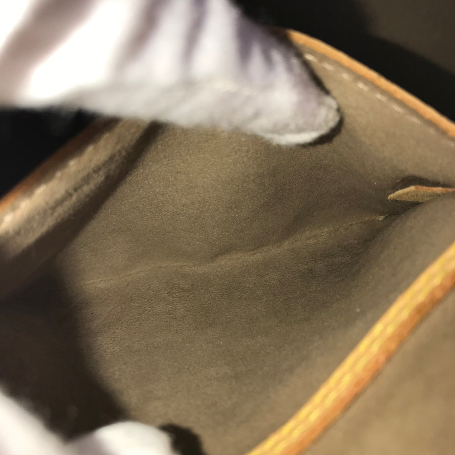 Handle: The natural leather has some fading, blackening, and small scratches.