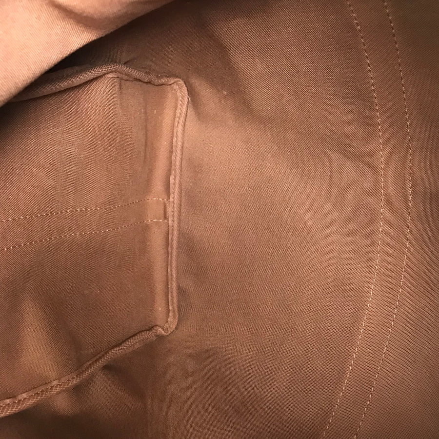 There are discolours and stains on the hardware, small scratches and peeling plating on the zipper rails.