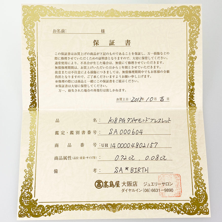 Retail store warranty (Takashimaya, October 2013)