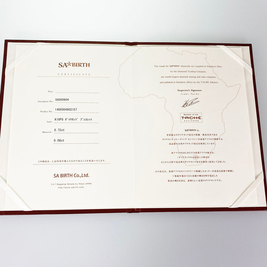 Weight:6g diamond:0.08ct/0.72ct Motif size:9.5mm×10.0mm Wrist Size:16cm