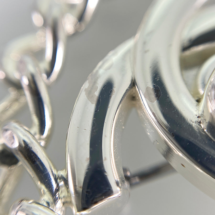 Overall: There are slight scratches, tarnish, and peeling plating scattered throughout the product.