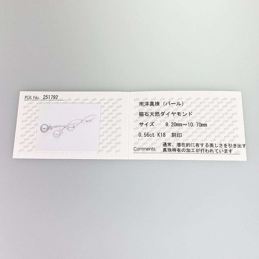 Weight:6.8g Pearl size (Diameter):9.3mm-10.5mm diamond:0.56ct Top size:23.6mm×71.9mm