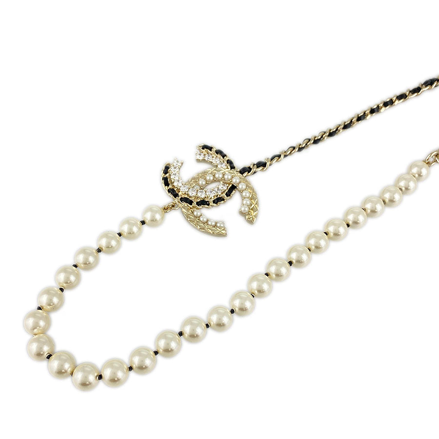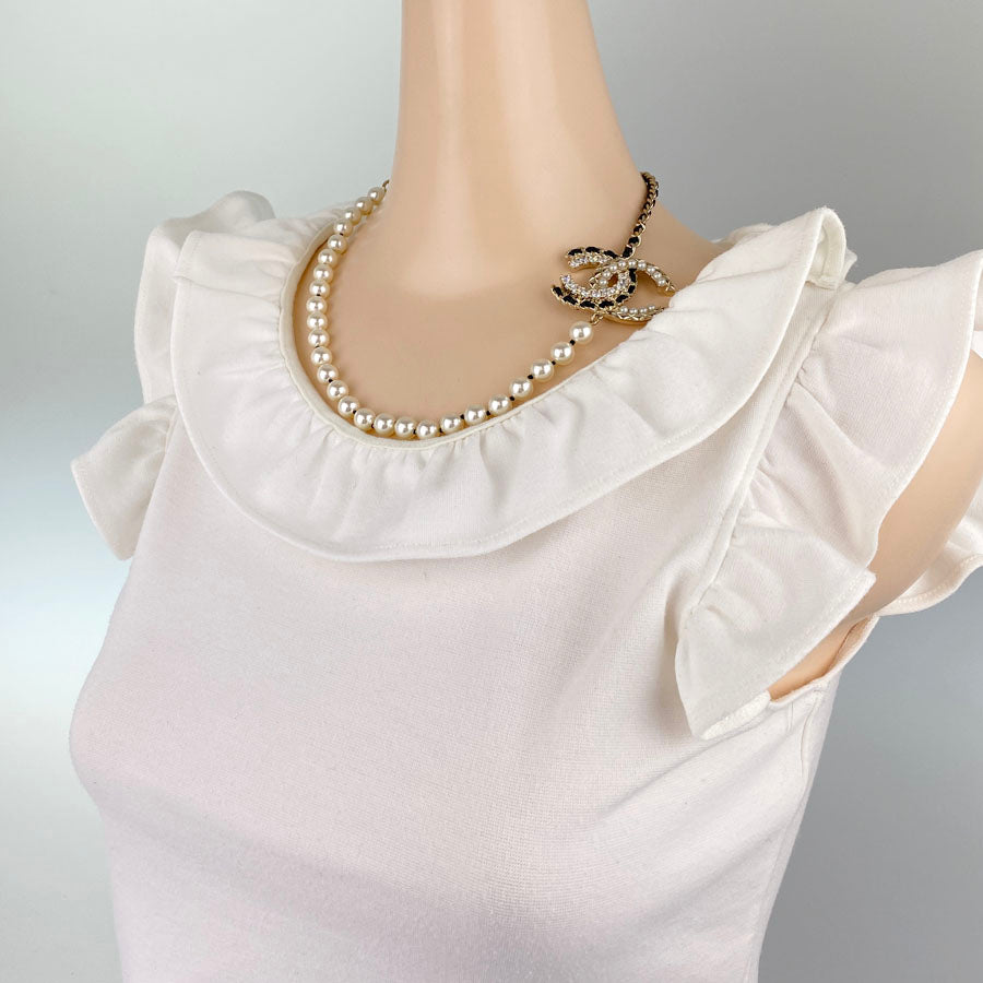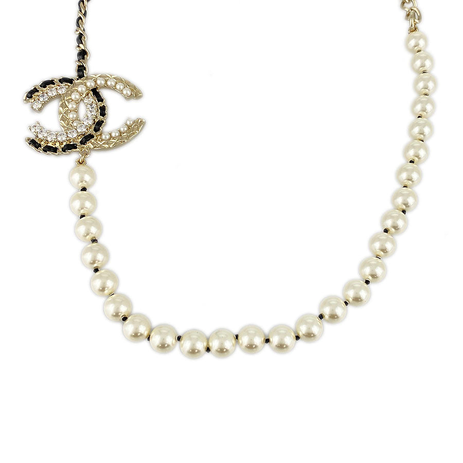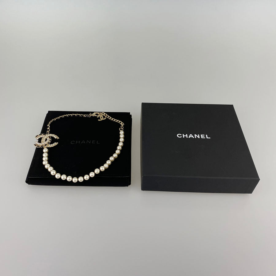 CHANEL Choker Fake Pearl Rhinestone COCO Mark Necklace