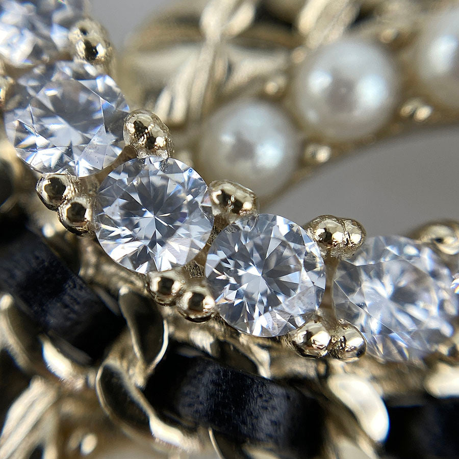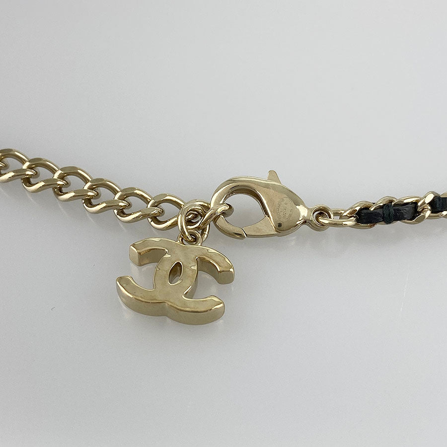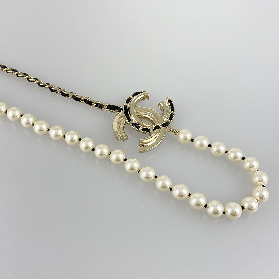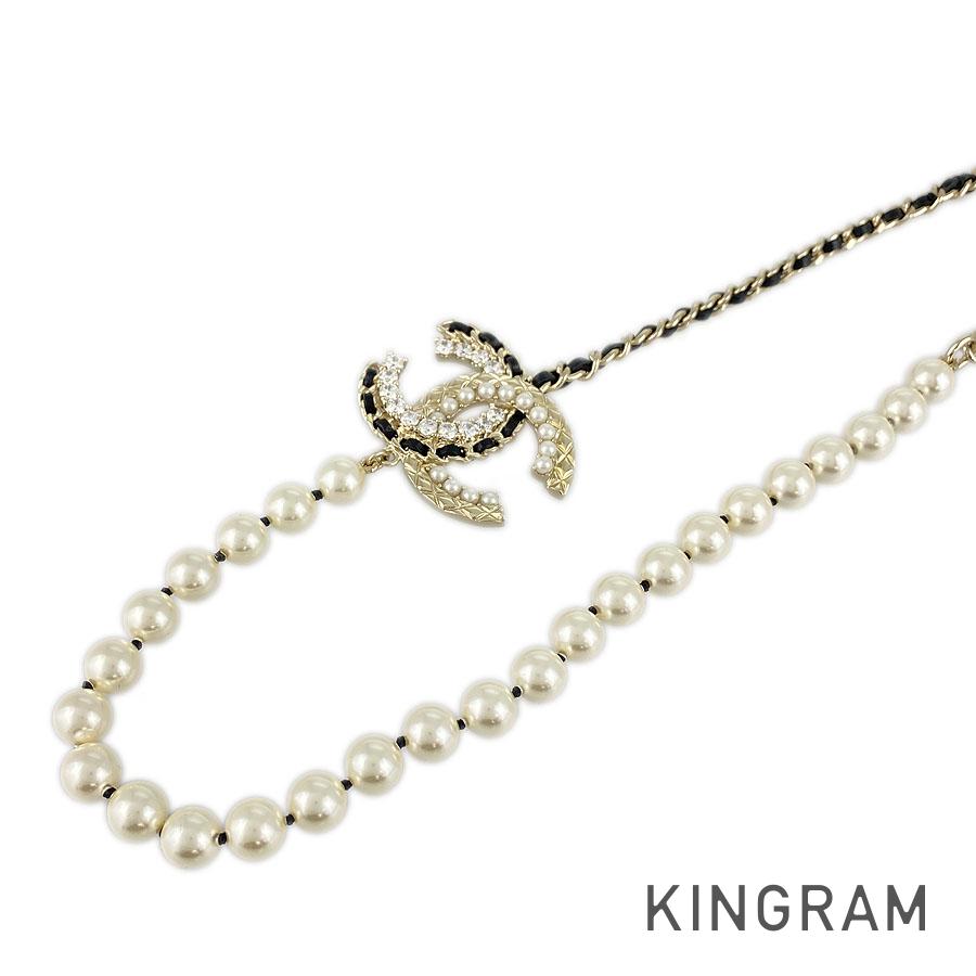 CHANEL Choker Fake Pearl Rhinestone COCO Mark Necklace