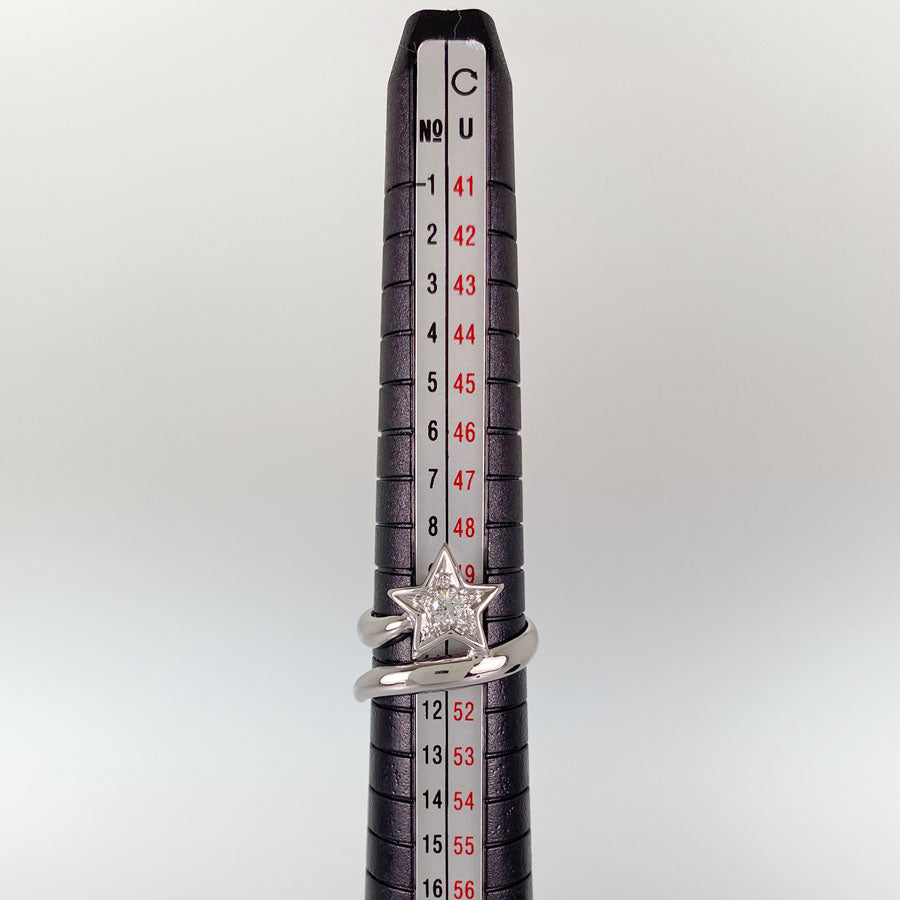 - Ring size (actual size): 10 (JP) /5.5 (US) / 50 (EU) Mark size: 17 Ring width: 0.1 "-0.6" Diamonds: unmarked / unknown carat count Weight: 5.7g