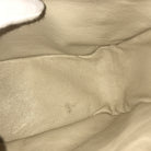There is stain on the leather of the zipper pull, and some tarnish and minor scratches on the hardware.