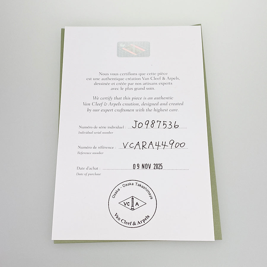 Manufacturer's sales certificate (Osaka Takashimaya/November 2025)