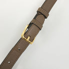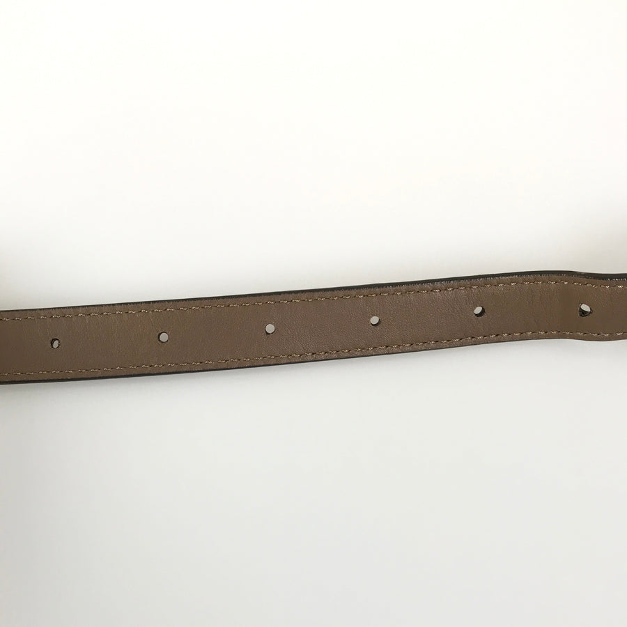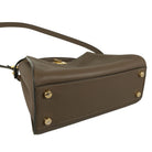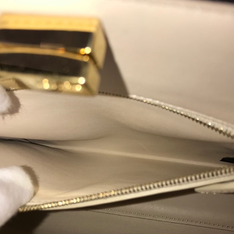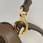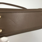 Handle/Shoulder strap: The leather around the shoulder strap hardware is out of shape and has some damage to the edge.