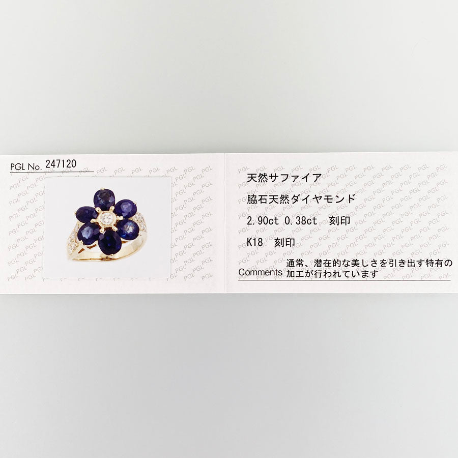 SizeJP:8.5 SizeUS:4.5 SizeEU:48 SizeUK:I 1/2-J 1/2 Ring width: 0.1 "-0.6" Sapphire: 2.90ct Diamond: 0.38ct Weight: 5.8 g