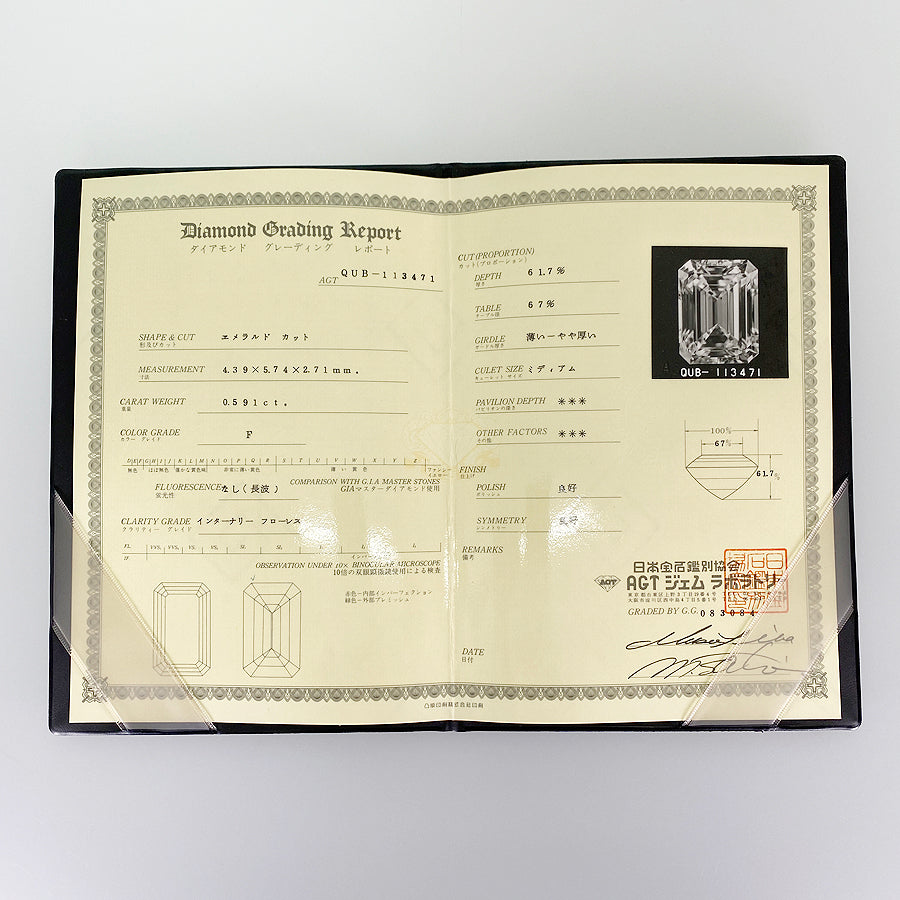 Diamond: F/IF/Emerald cut (see certificate)