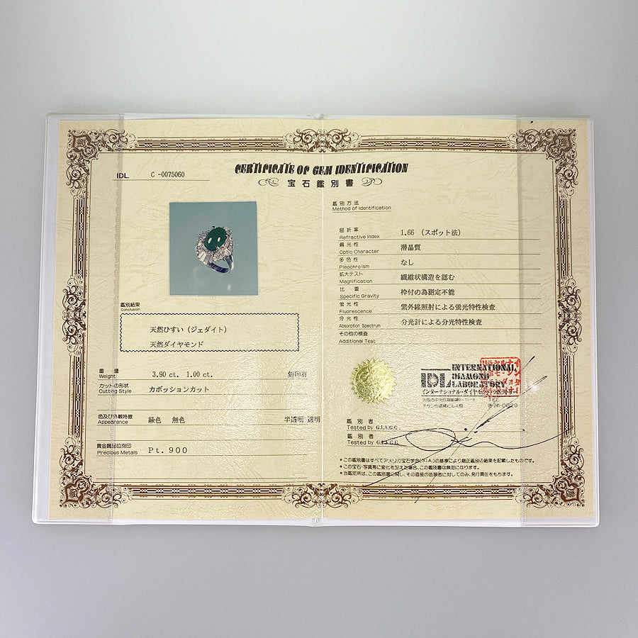 Gemstone identification certificate (International Diamond Laboratory)