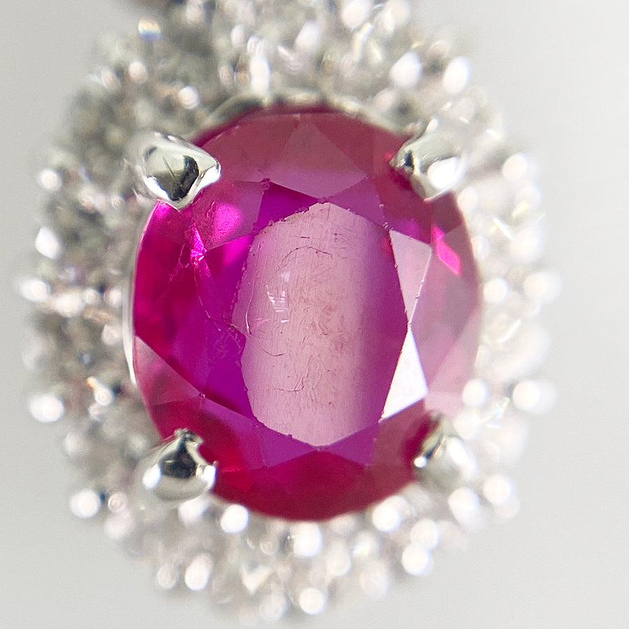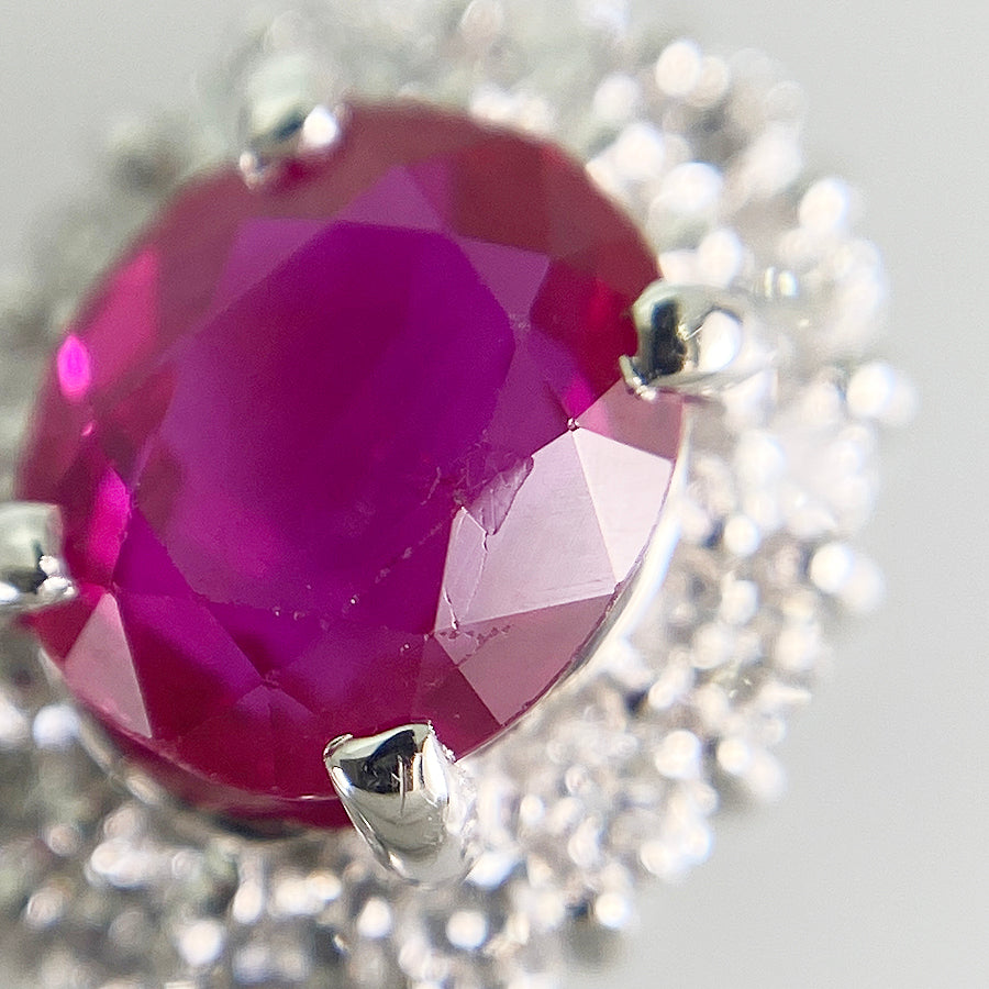 Ruby/Diamond: The ruby contains tiny scratches and inclusions.