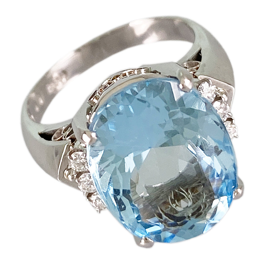 Ring Platinum Aquamarine Diamond
