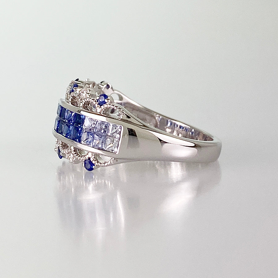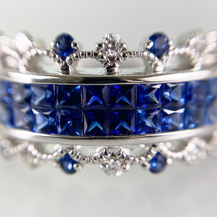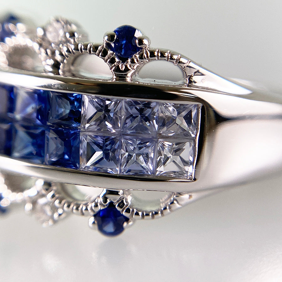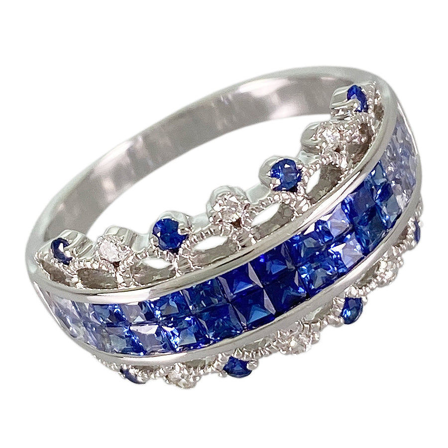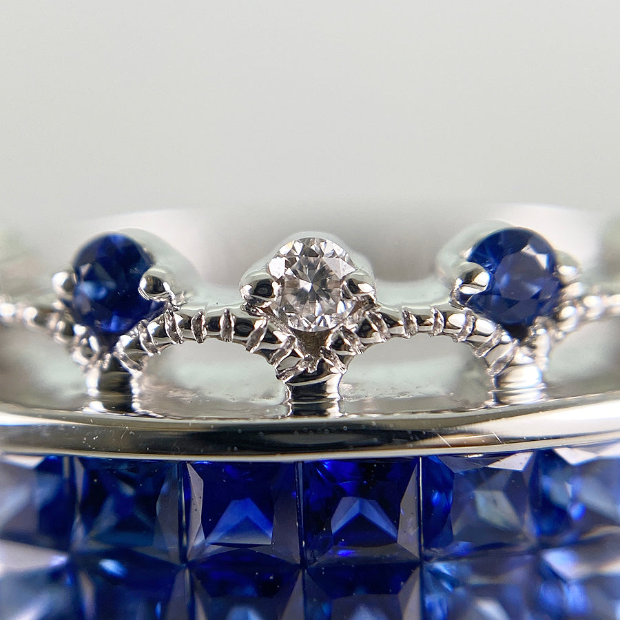 SizeJP:16 SizeUS:8 SizeEU:56 SizeUK:Q Ring width:0.1"-0.4" Weight:5.7g Sapphire: 1.70ct Diamond: 0.07ct