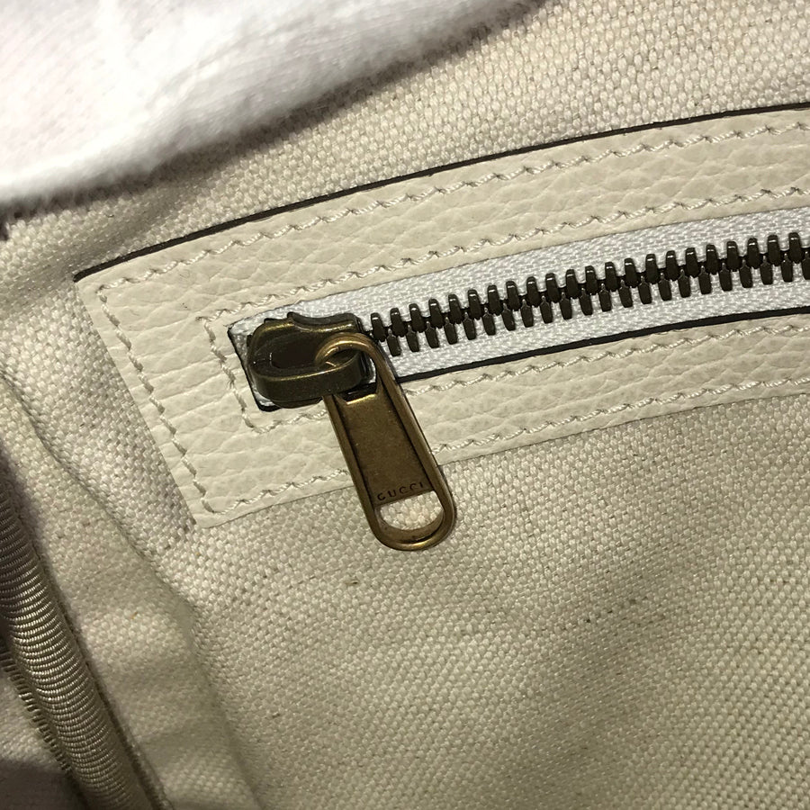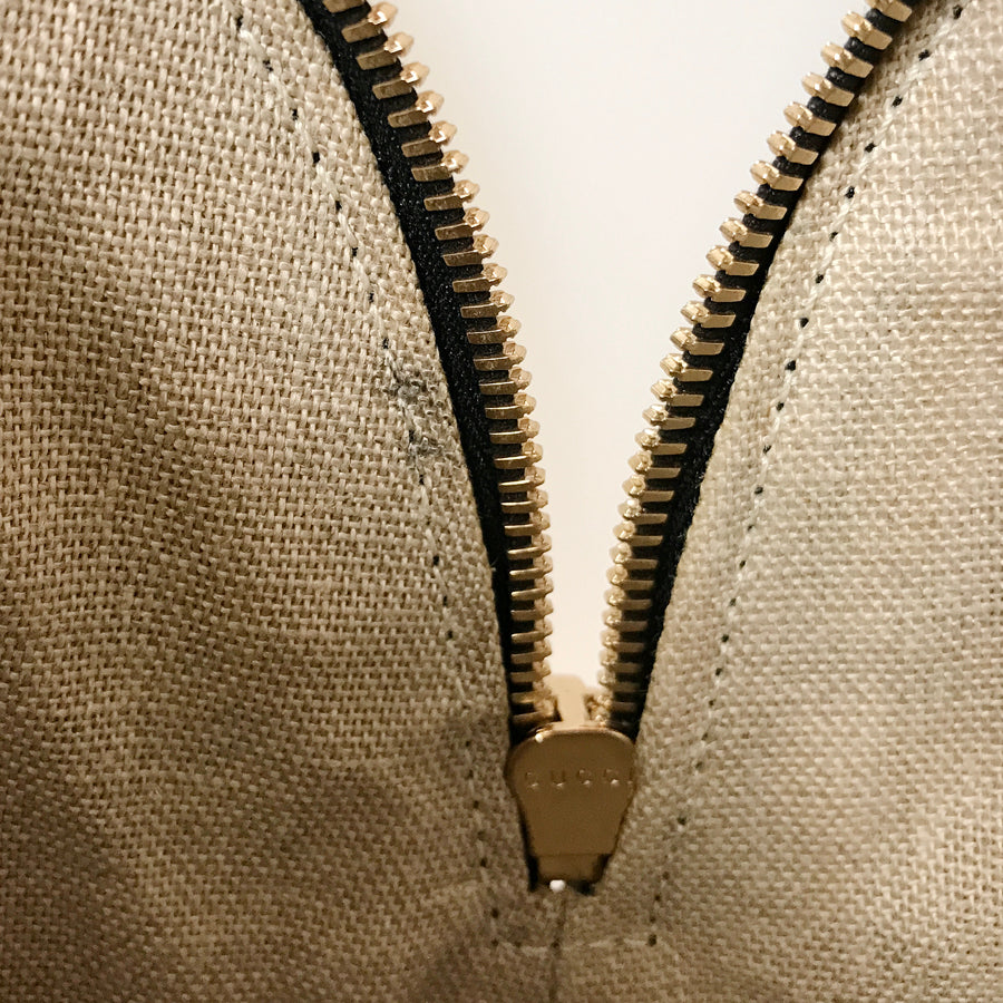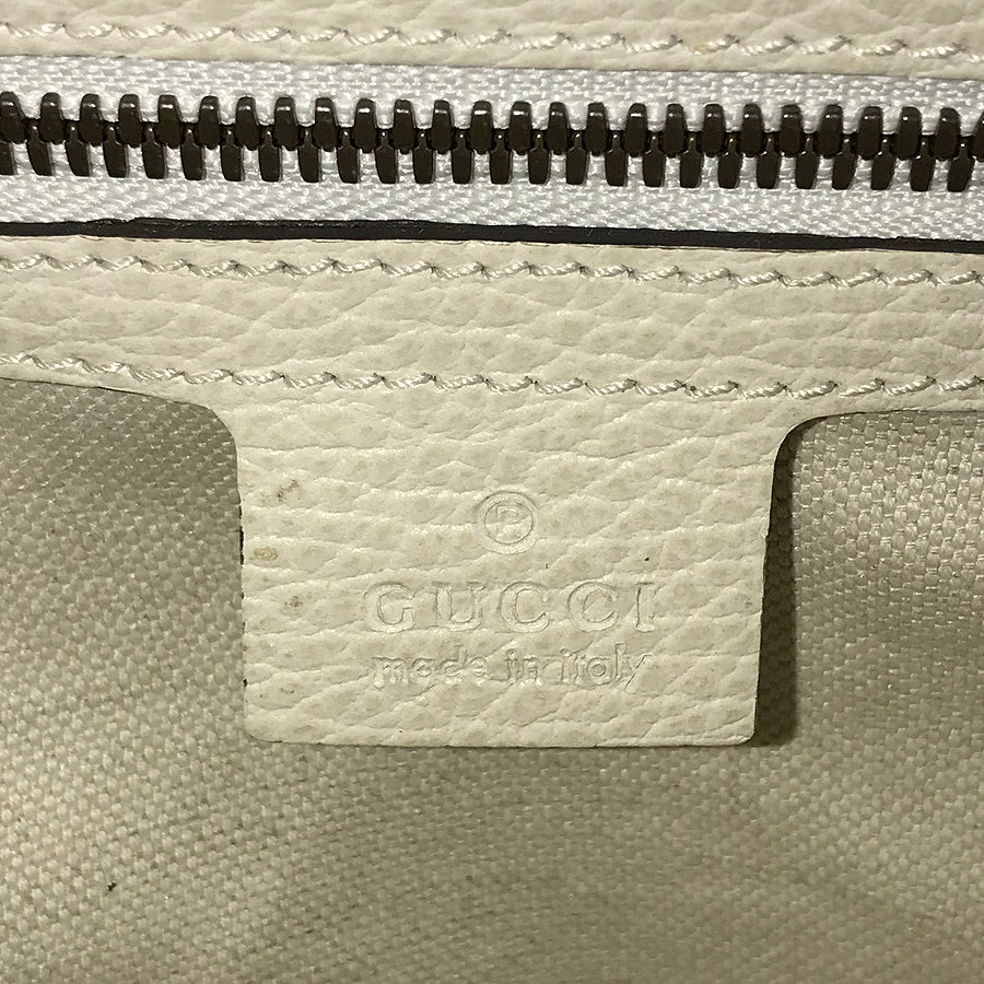 The distinctive GG logo and bamboo handle design symbolize Gucci's identity.