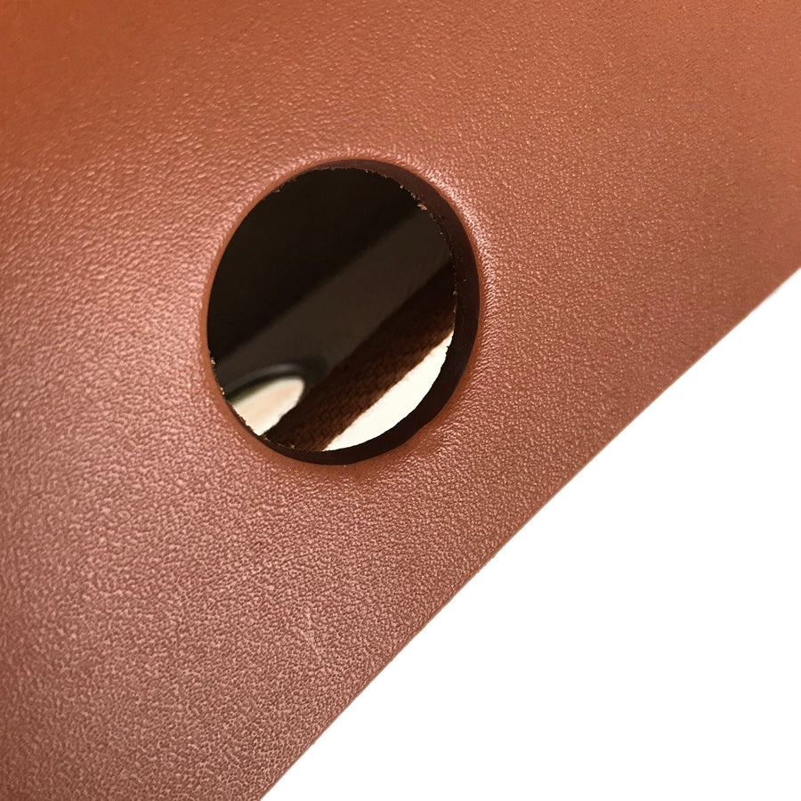Overall: There is a slight indentation near the center hole of the flap leather part.