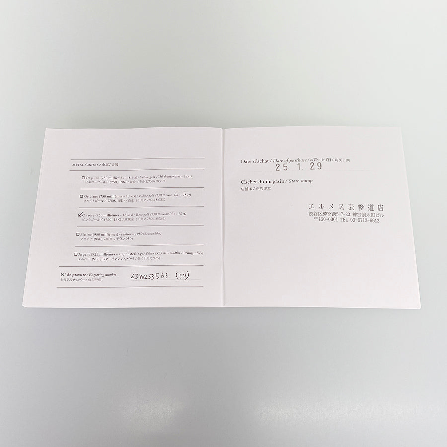 Manufacturer's Sales Certificate (Omotesando Store, January 2025)