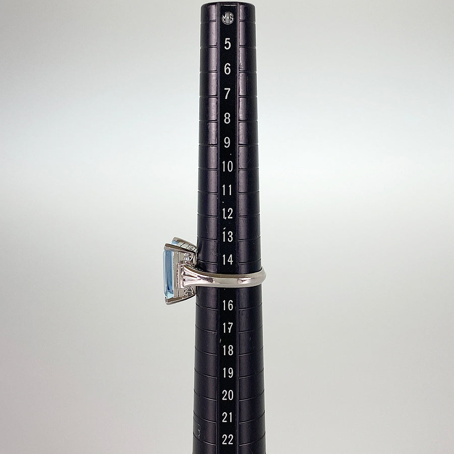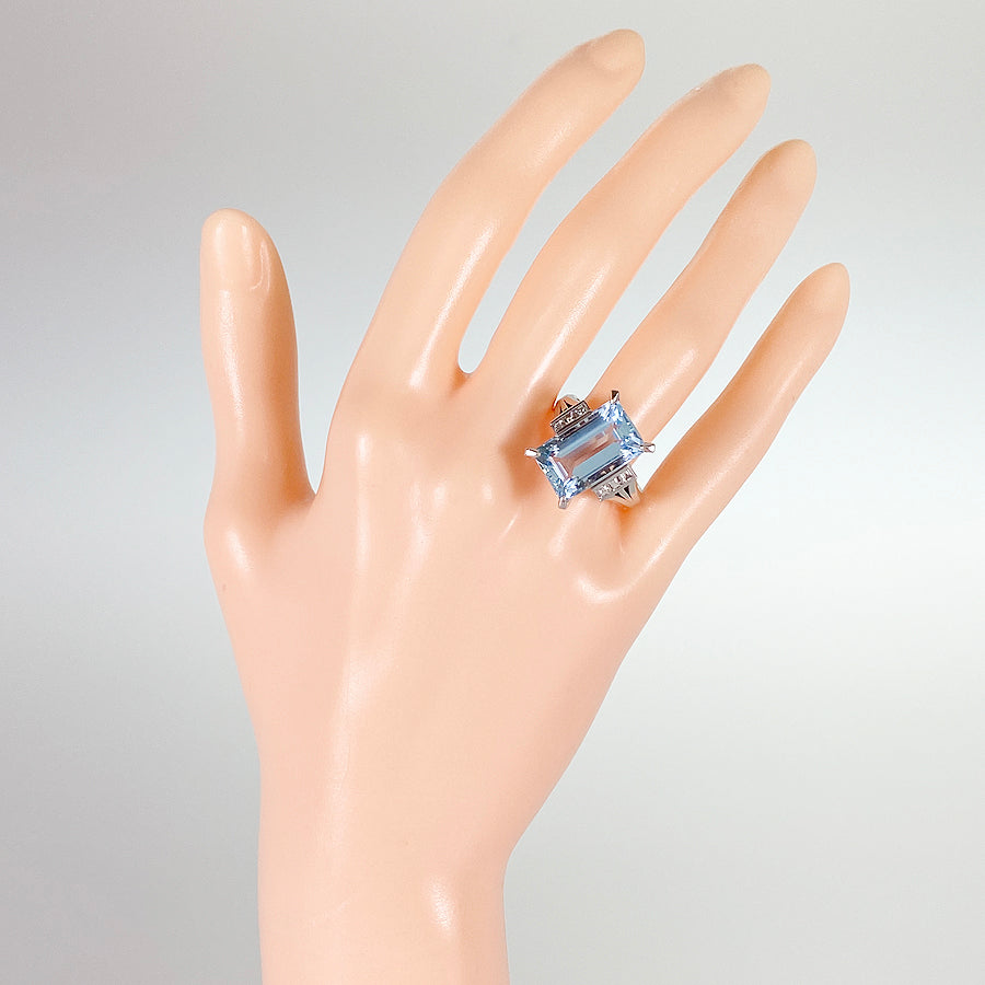 SizeJP:15 SizeUS:7.5 SizeEU:55 SizeUK:P Ring width:3.4mm-16.7mm Weight:10.7g Aquamarine:7.07ct diamond:0.32ct