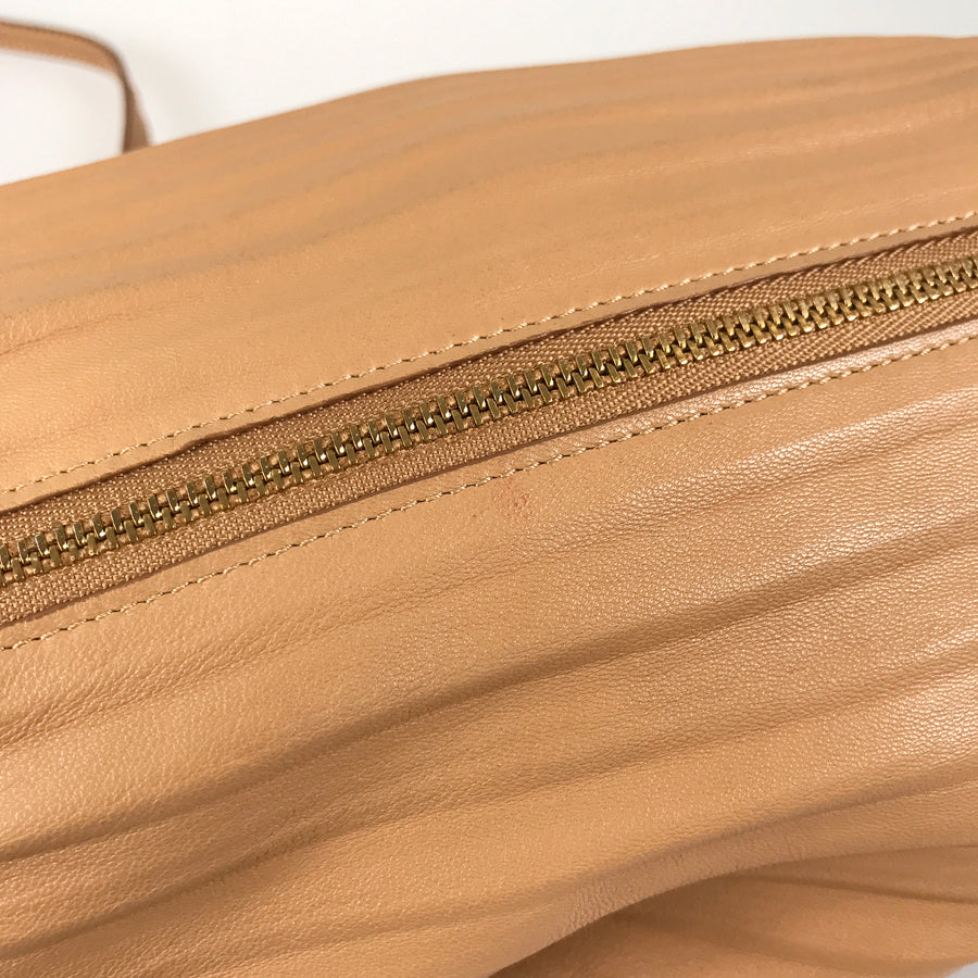 There are small scrub scratches on the leather and hardware on the sides.