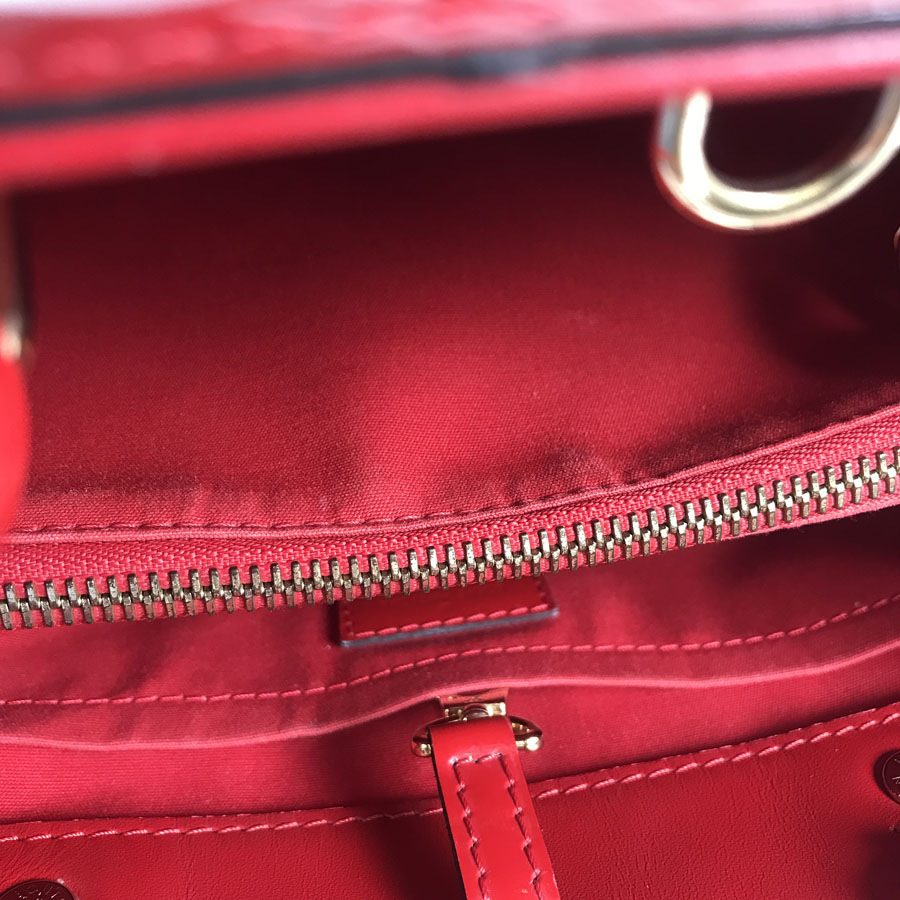 Handle/Strap: Patent leather has some tarnish and stains that cannot be removed.