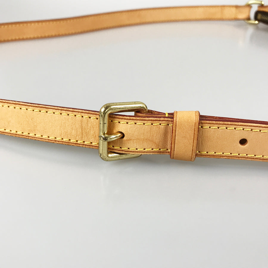 Strap: The vegetable-tanned leather has some tanning, stains, wrinkles, some cracks, slight discoloration, and scrubbing.