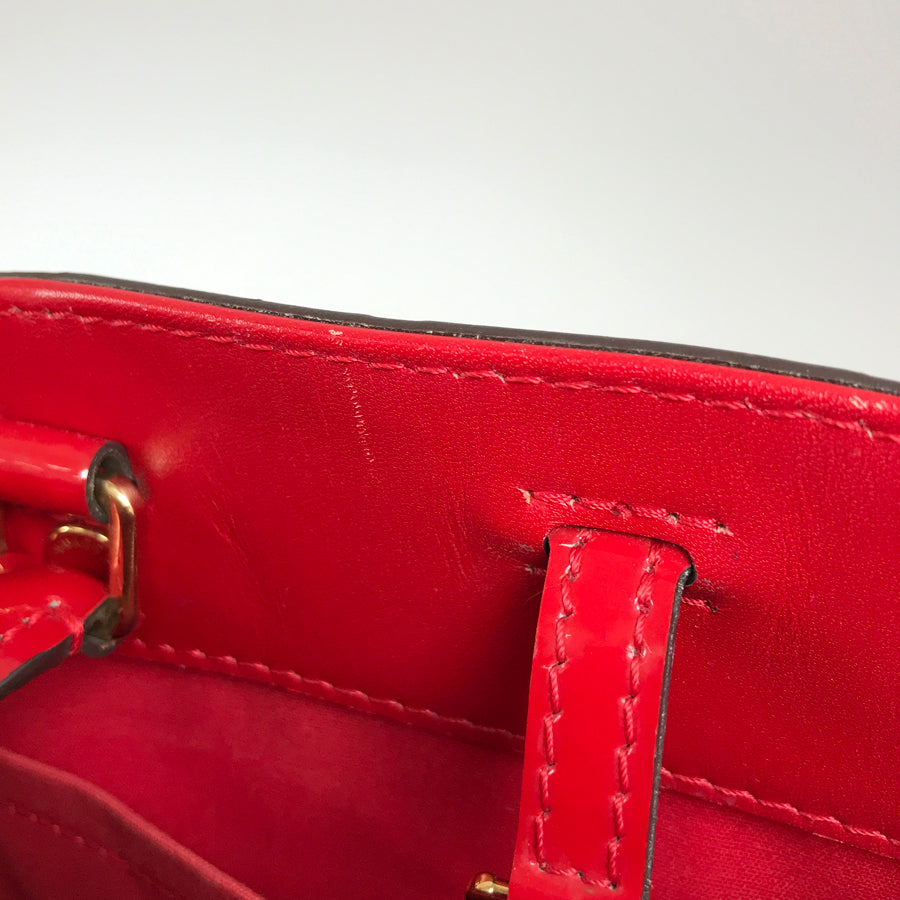 Handle/Strap: Patent leather has some tarnish and stains that cannot be removed.