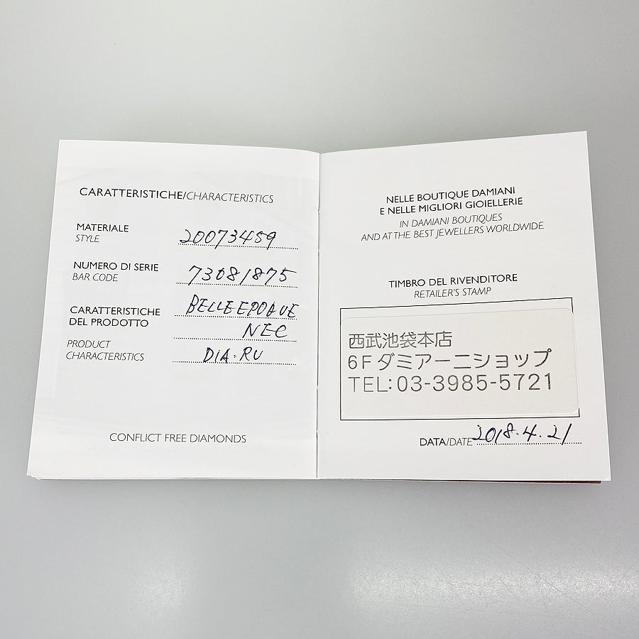Manufacturer's sales certificate (Seibu Ikebukuro Main Store/April 2018)
