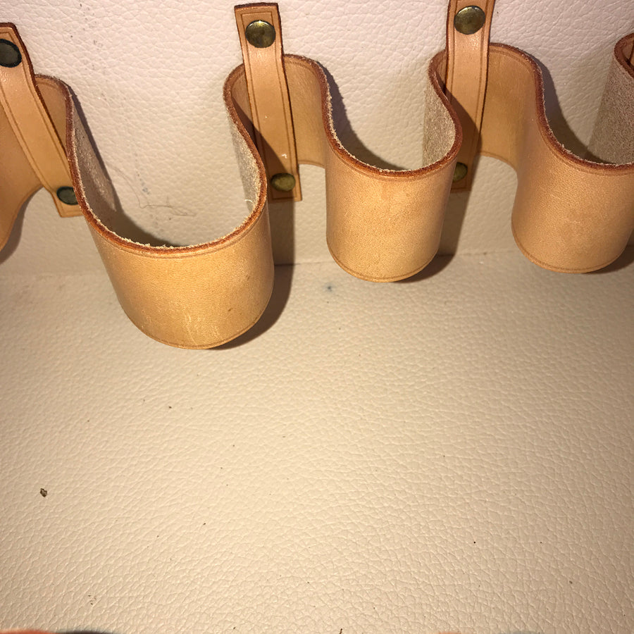There are small stains, scrubs and light scratches scattered on the leather edges.
