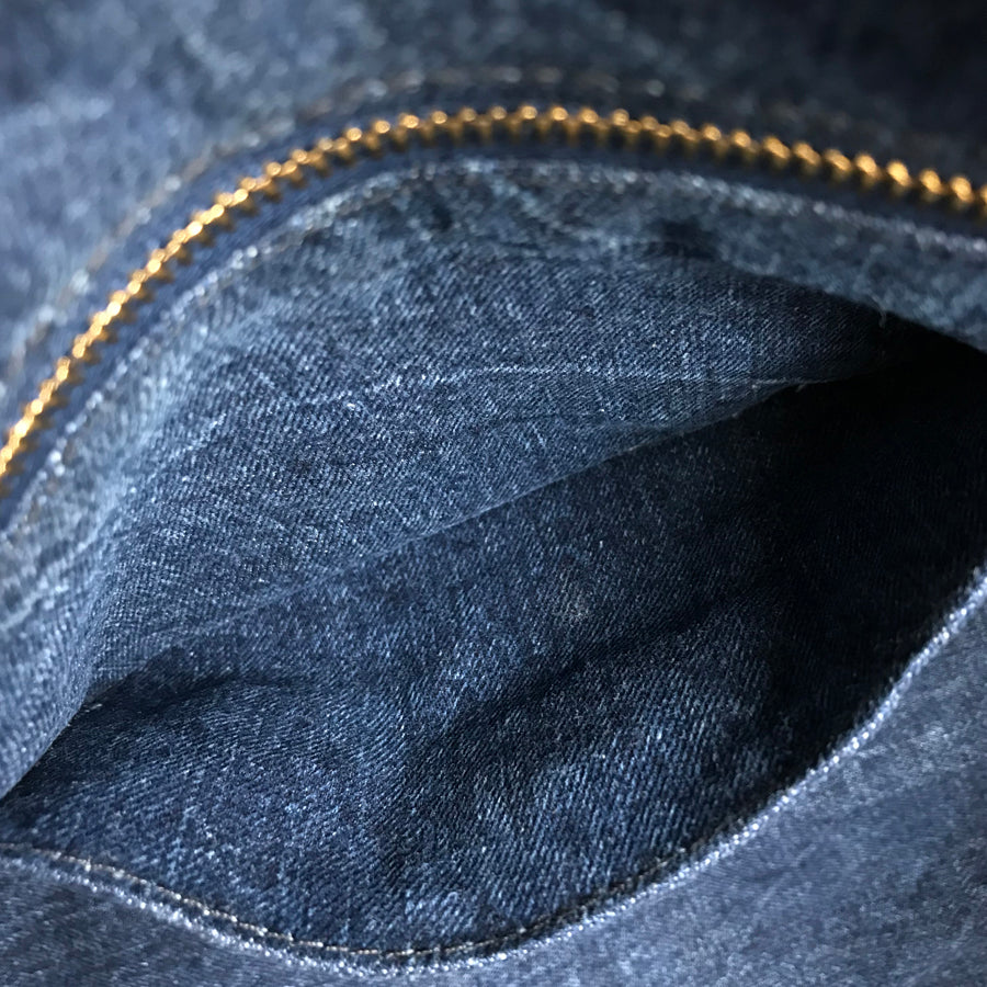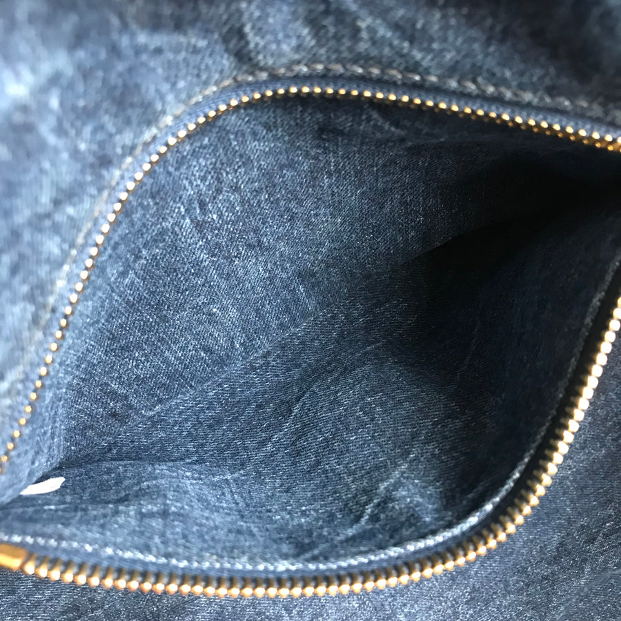 Handle: Minor stains, fading, scrub and typical denim discoloration.