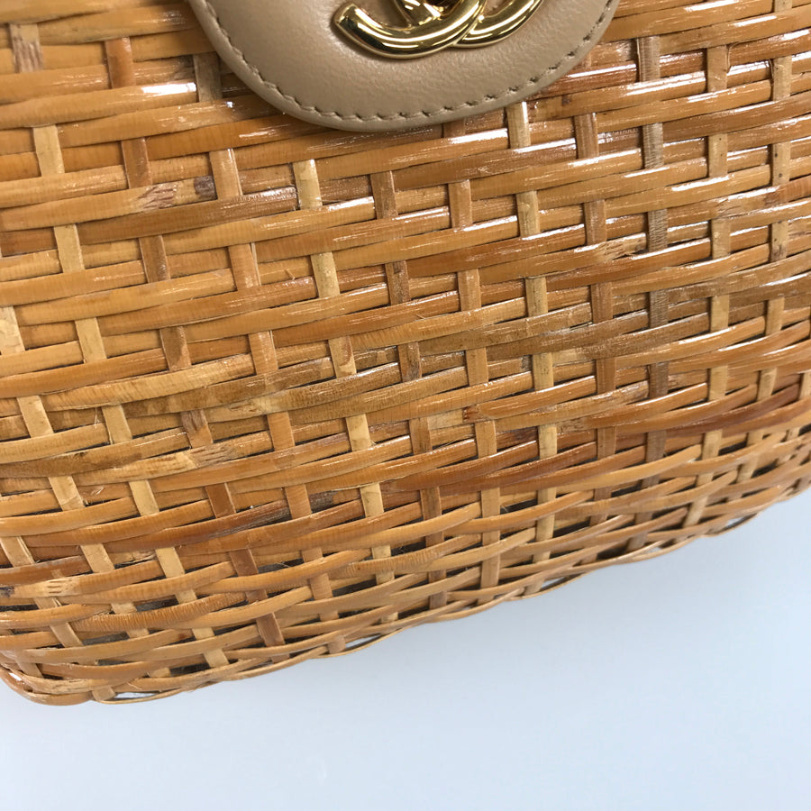 Outside: There are small scrubs and tears on the straw fabric.