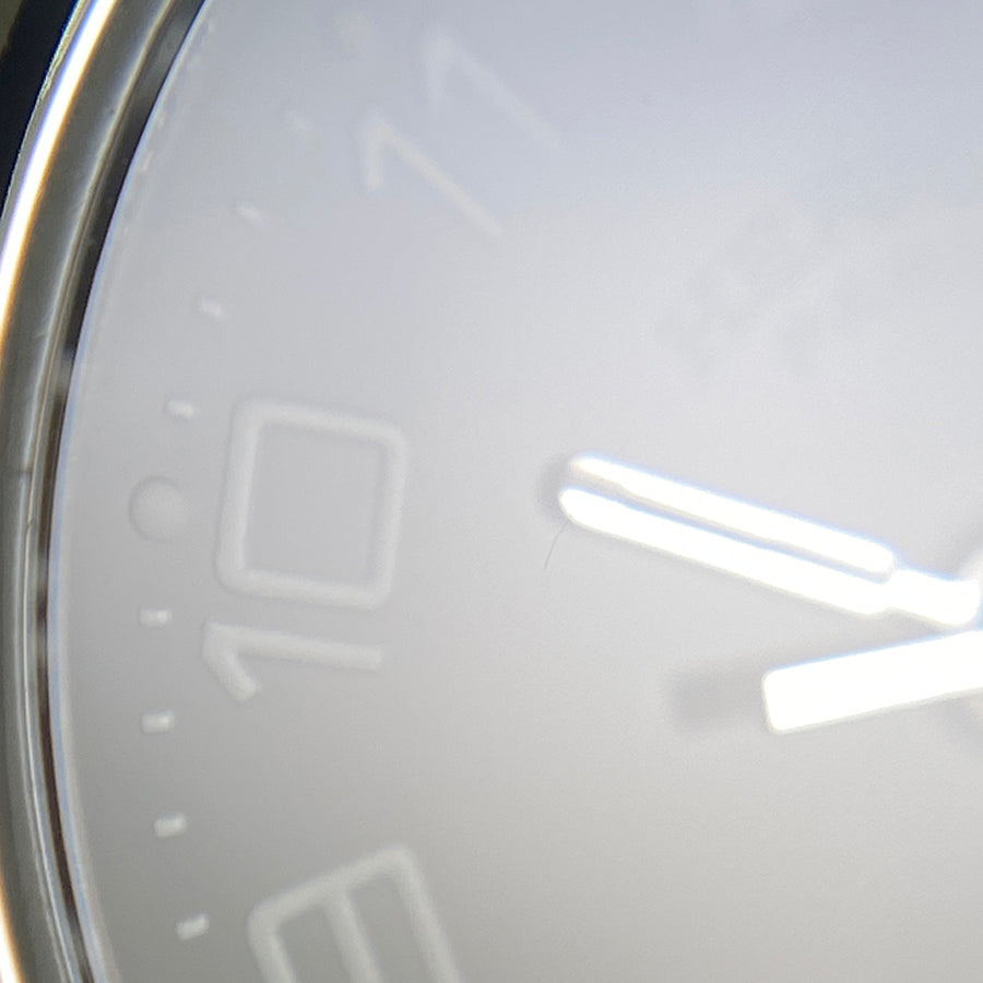 Crystal/Dial: There is a thin scratch around 10 o'clock on the crystal.