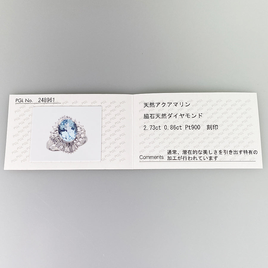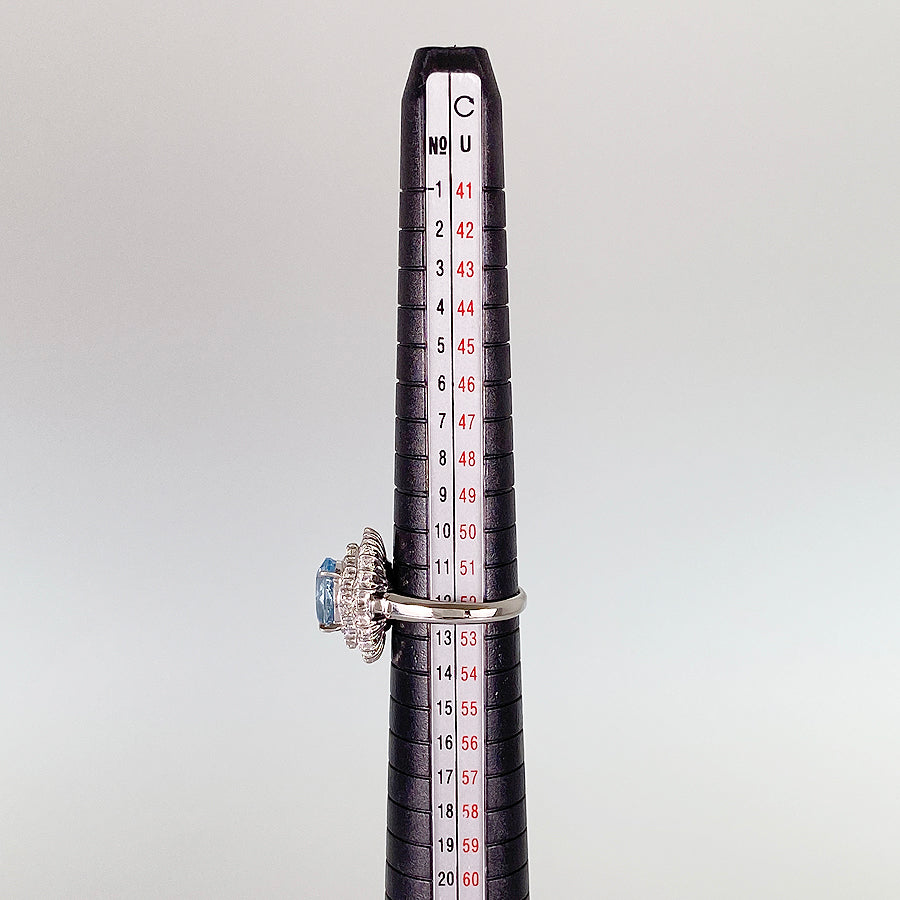 SizeJP:12 SizeUS:6.5 SizeEU:52 SizeUK:M Ring width: 0.1 "-0.7" Aquamarine: 2.37ct Diamond: 0.86ct Weight: 9.5g