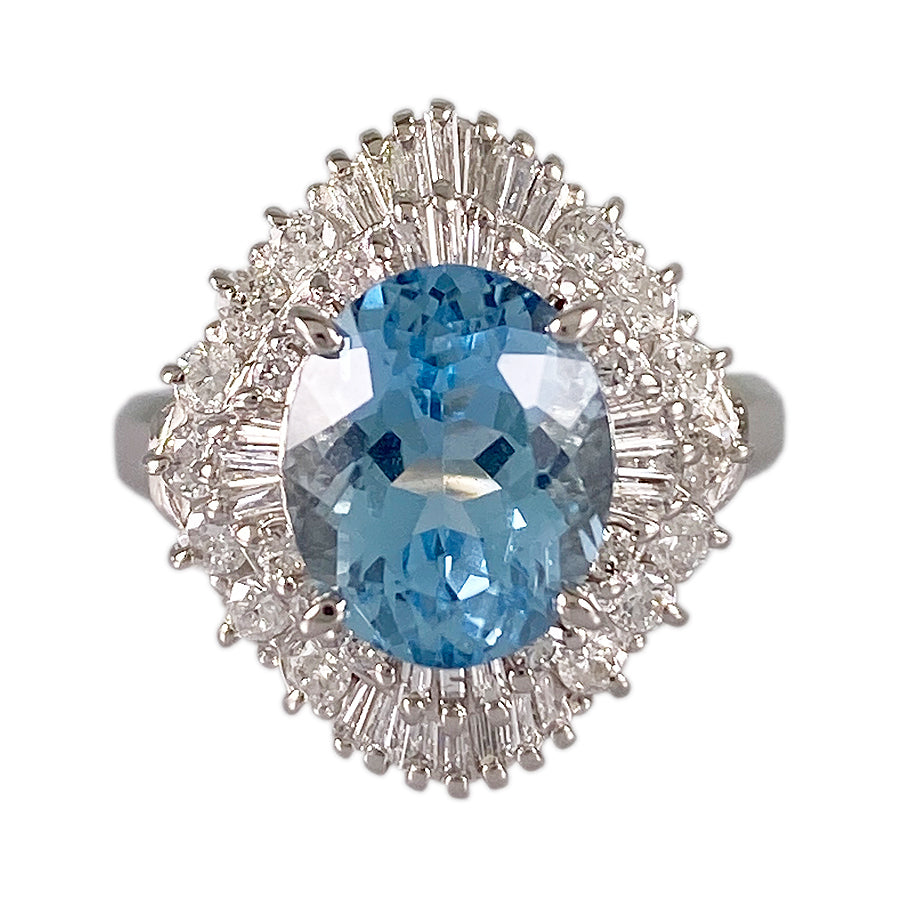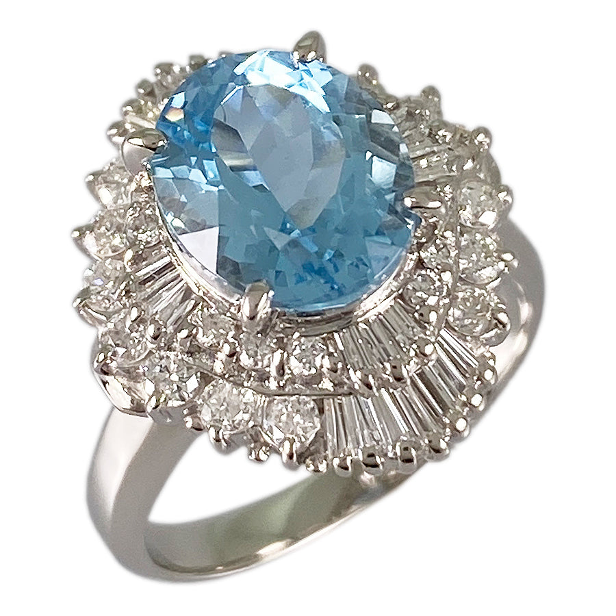 Ring Platinum Aquamarine Diamond