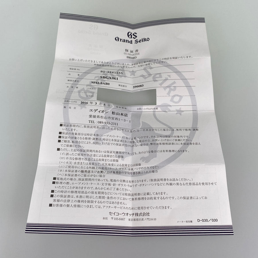 SEIKO Grand Seiko SBGX061 Men's Watch
