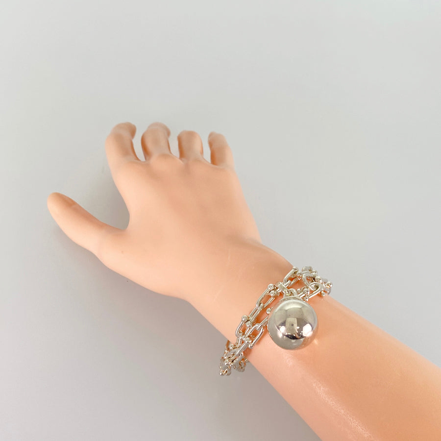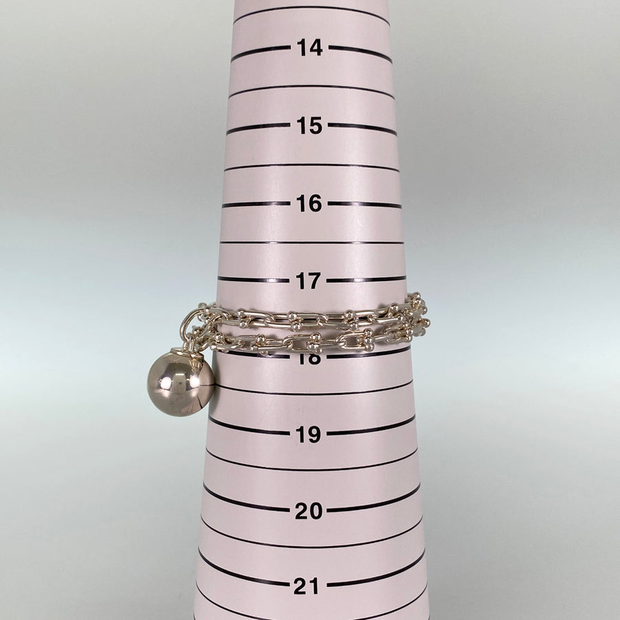 Weight:45.2g Motif size (sphere): 0.9" x 0.7" Motif size (cadena): 0.6" x 0.4" Bracelet Length: 15.6" Wrist Size (double): 6.9"