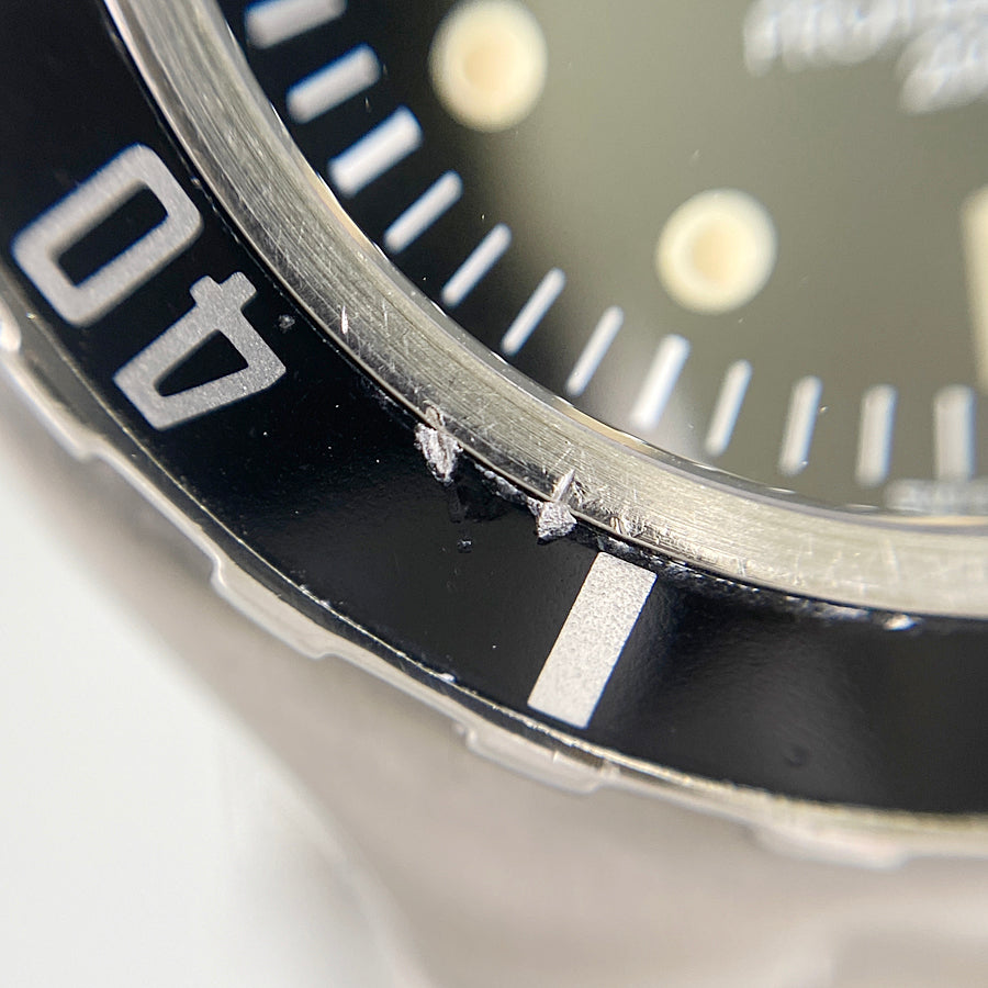 Case: The exterior has been finished, but there are many small scratches and chips on the bezel and scrapes near the crystal.