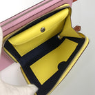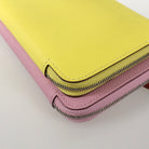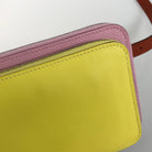There is a slight stain on the top of the card pocket on the inside of the yellow leather.