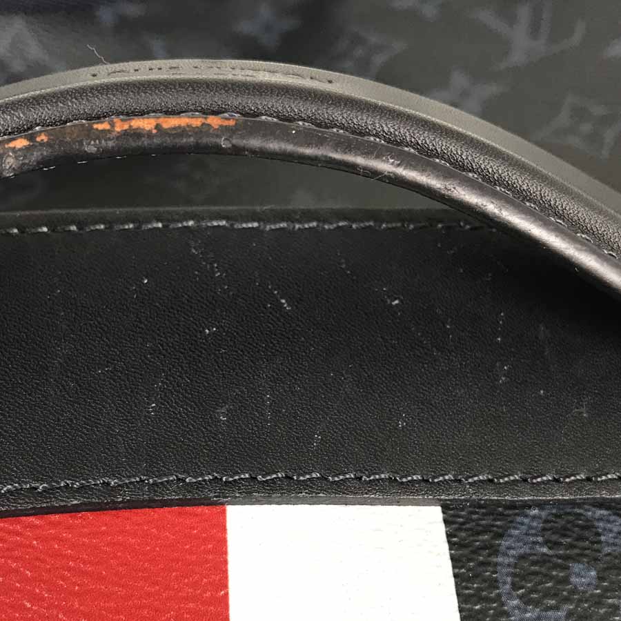 There are Rubbed marks and scratches on the leather around the handle.
