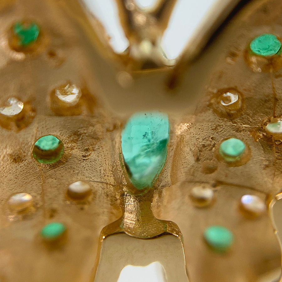 Overall: Although the exterior has been finished, there are some light scratches on the emeralds and diamonds that cannot be removed.
