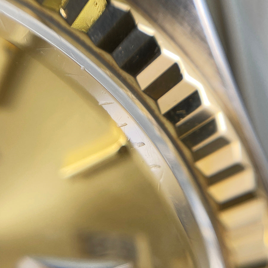 - Case: The exterior has been finished, so it is generally in good condition, but there are some small scratches and dents on the bezel that cannot be removed.