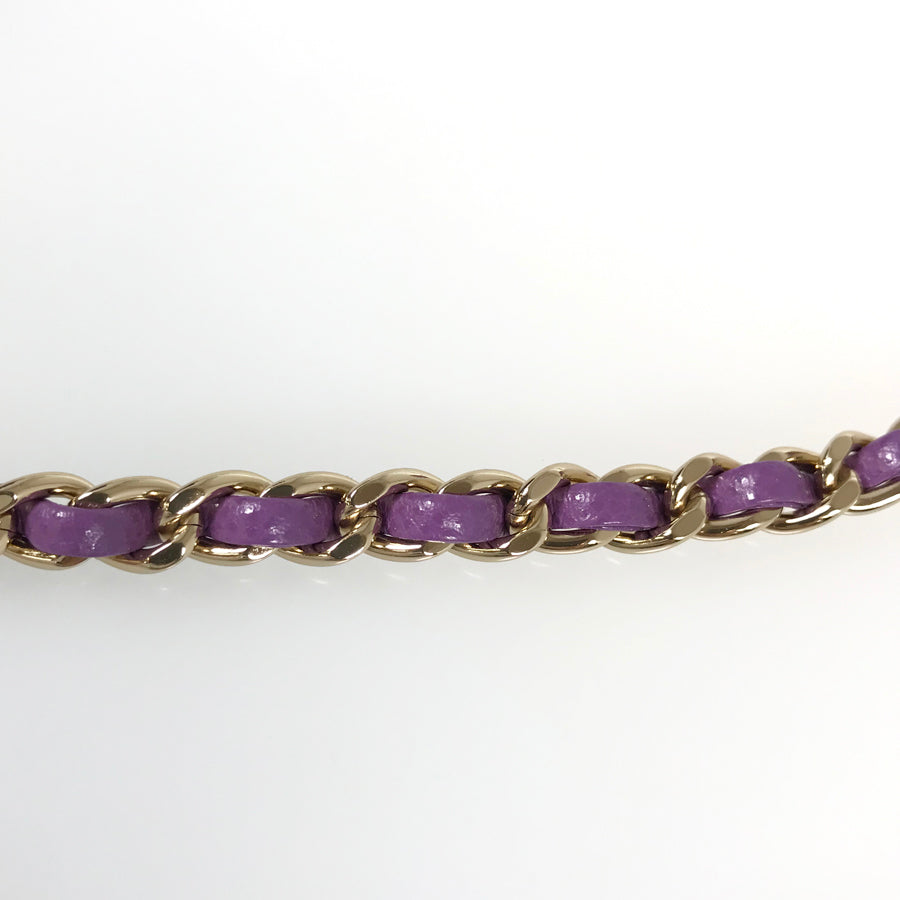 Overall: There is slight scrubbing and corner wear overall, and slight scratches on the chain, hardware, and bottom studs, but it is in very good condition.