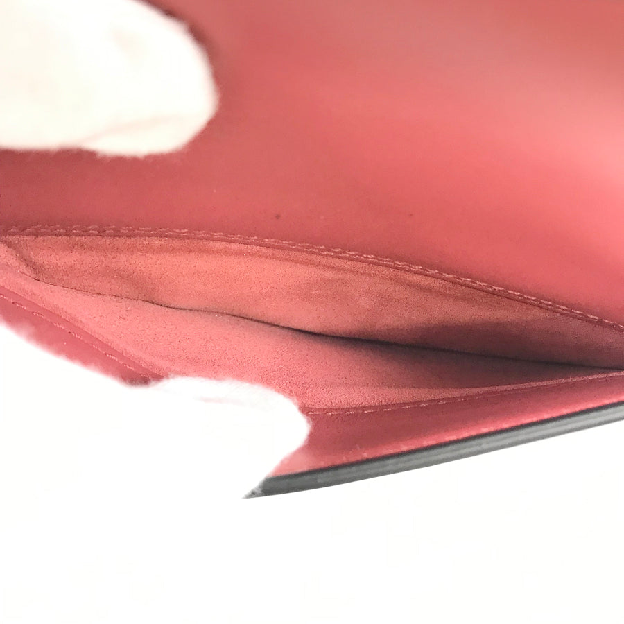 - Handle: The leather has wrinkles and a slight stain at the base, and there are small scratches on the inside and around the edges.