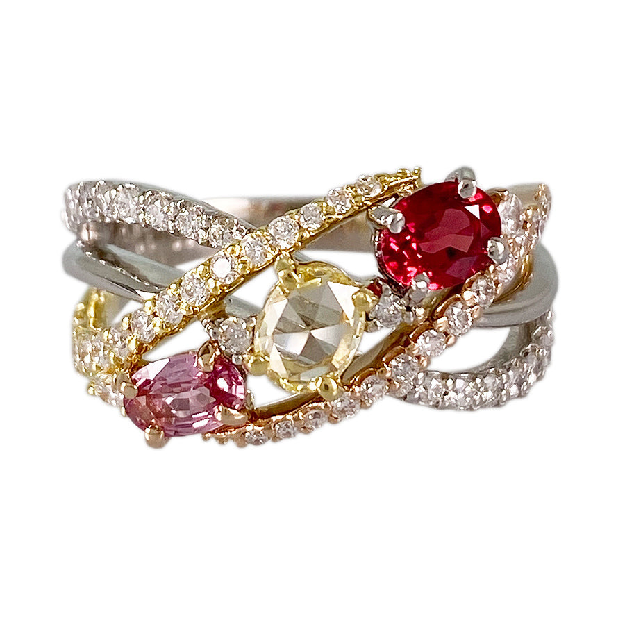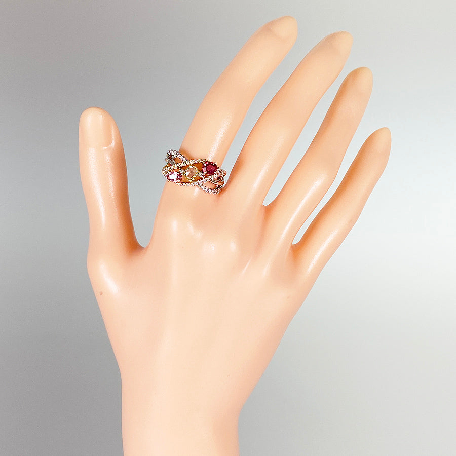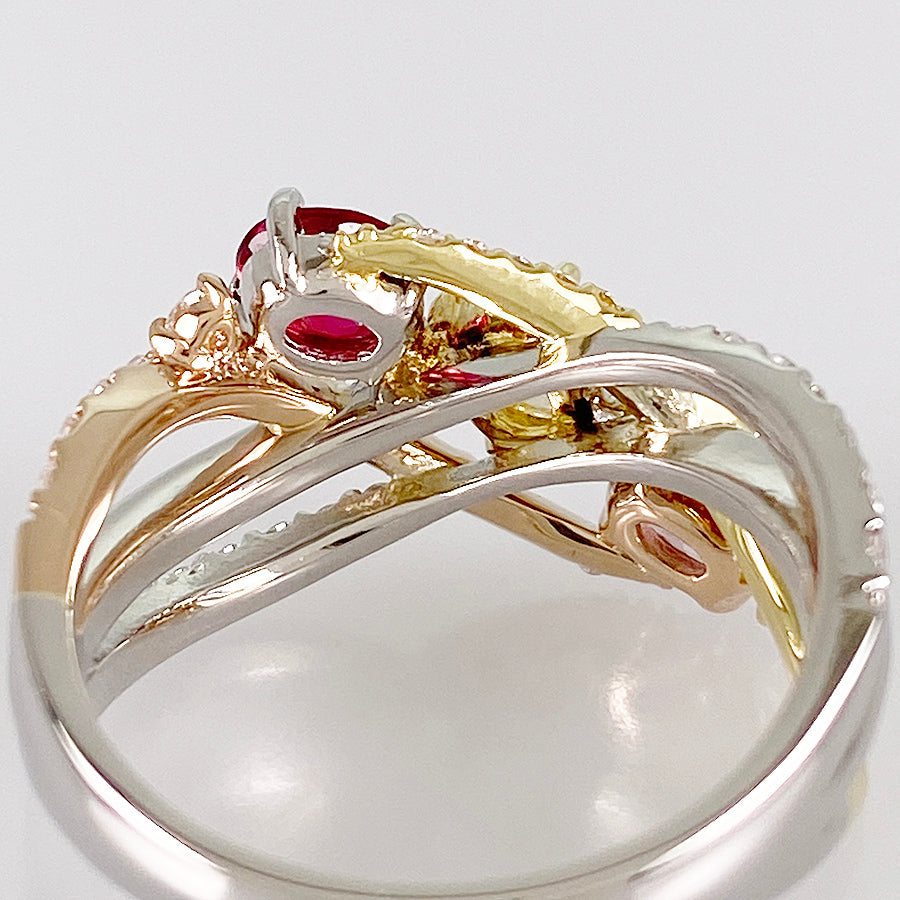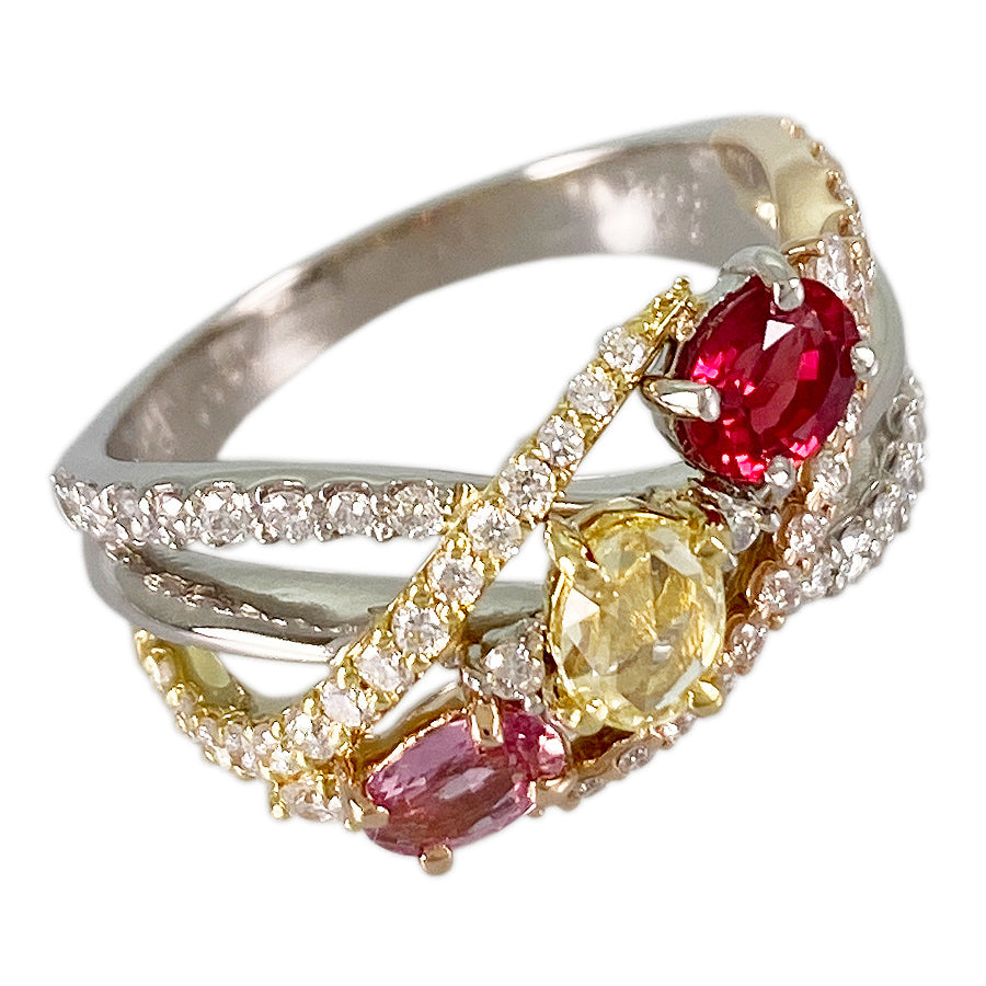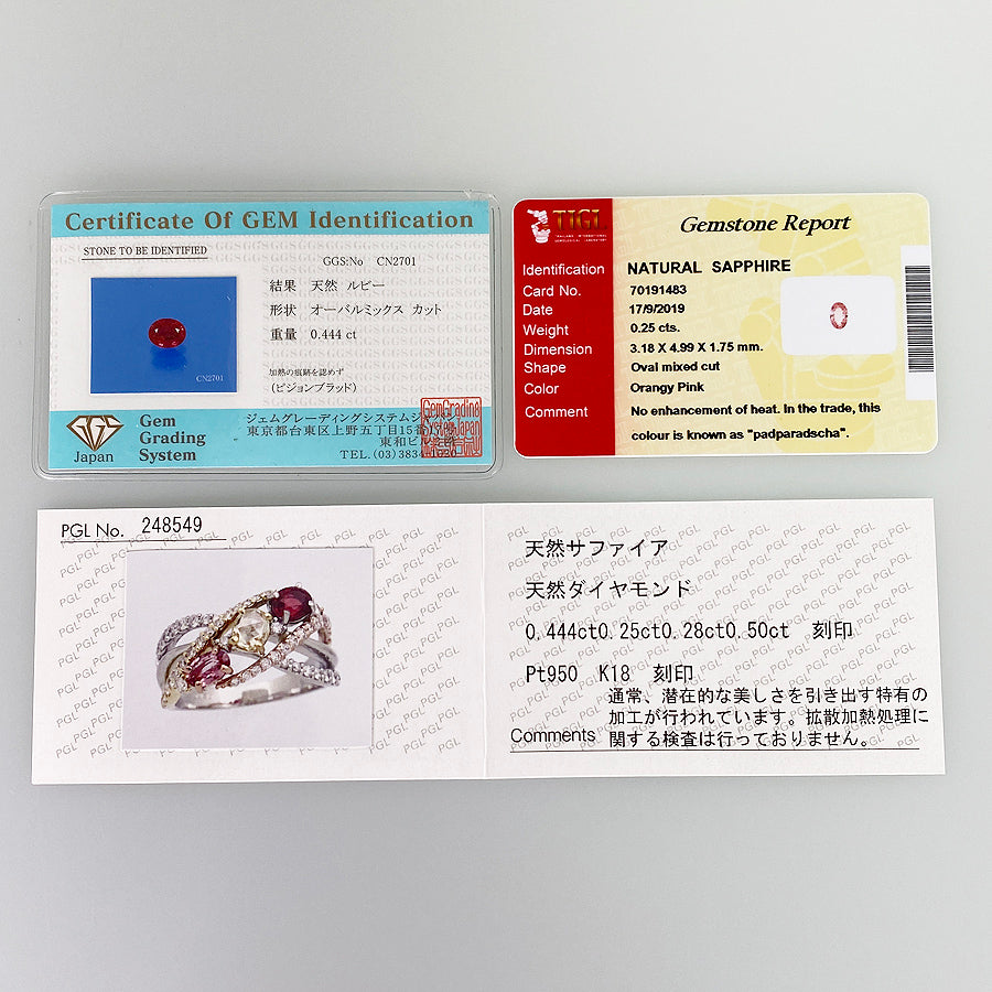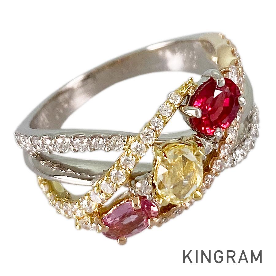 Ring size:12(JP)/6.5(US)/52(EU) Ring width:2.4mm-12.3mm Ruby:0.444ct Sapphire:0.25ct/0.28ct diamond:0.50ct weight:7.4g