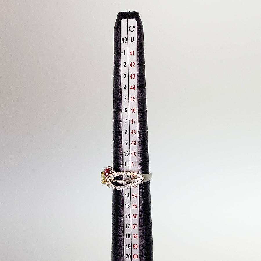 - Ring size: 12 (JP) / 6.5 (US) / 52 (EU) Ring width: 0.1 "-0.5" Ruby: 0.444ct Sapphire:0.25ct/0.28ct Diamond: 0.50ct Weight: 7.4g