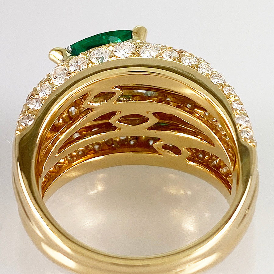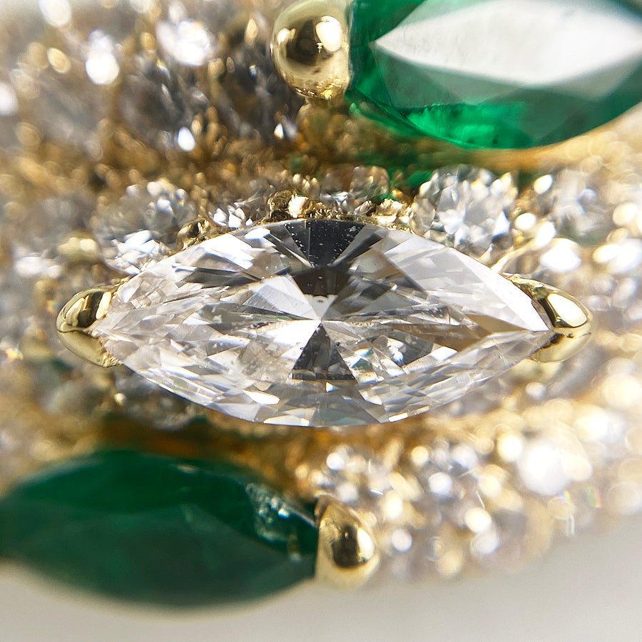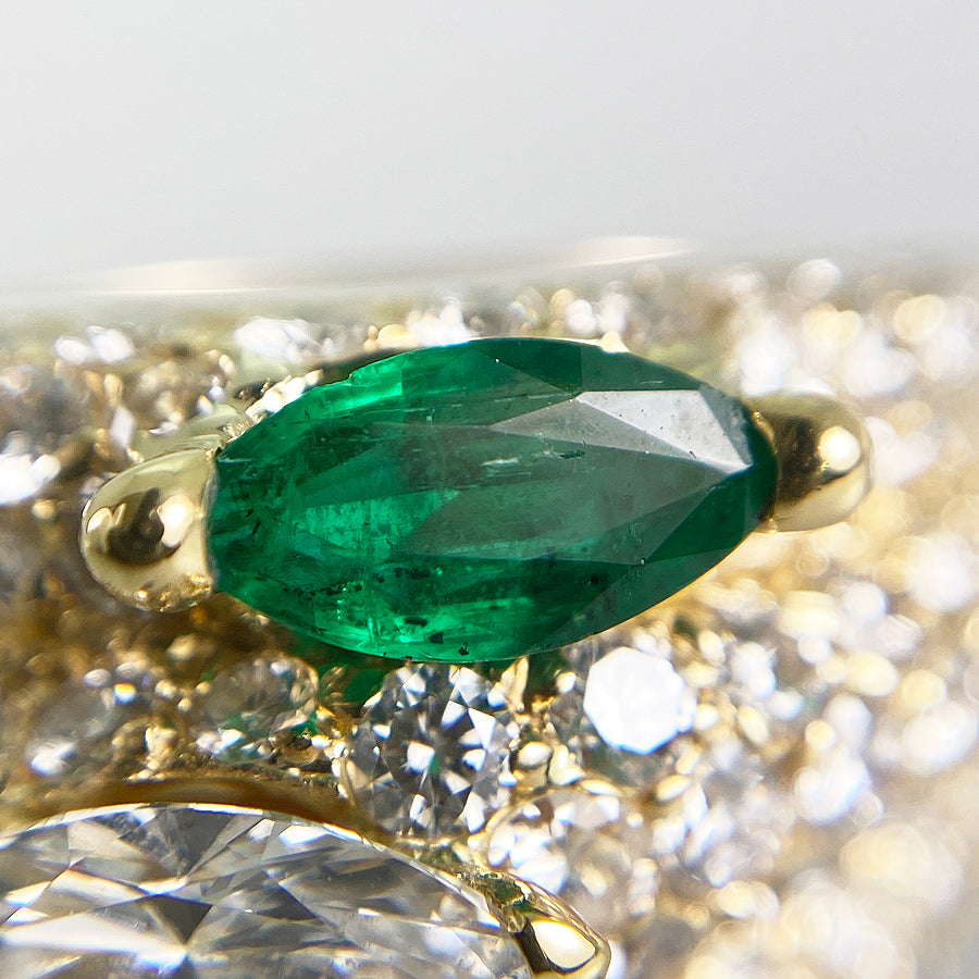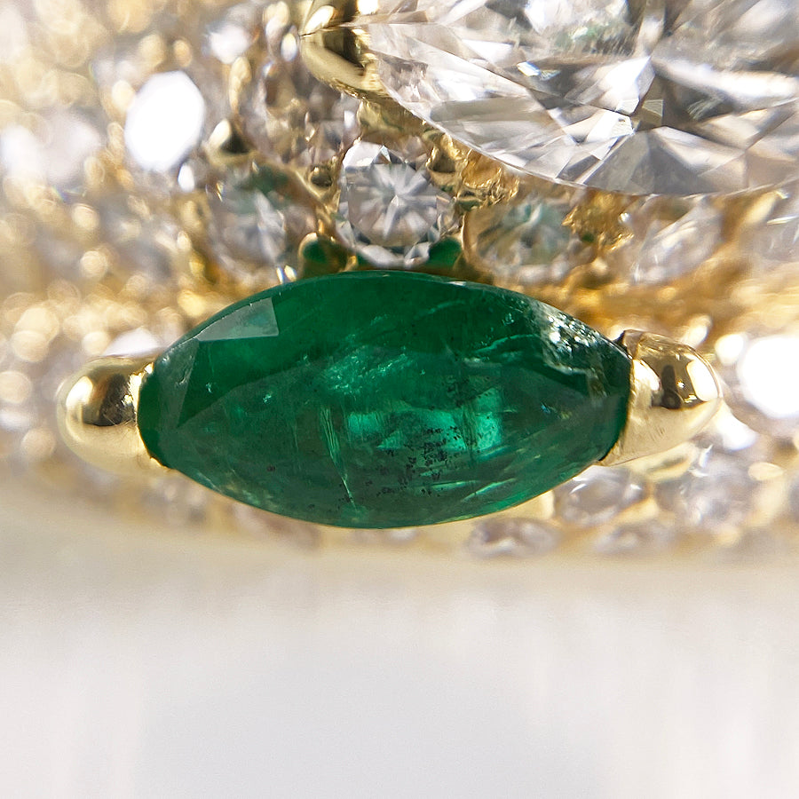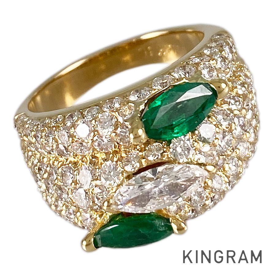 SizeJP:15 SizeUS:7.5 SizeEU:55 SizeUK:P Ring width:3.2mm-13.5mm Weight:12.1g Emerald:刻印なし/カラット数不明 diamond:刻印なし/カラット数不明
